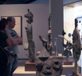 El último espacio de la exposición está dedicado a la obra escultórica y gráfica de Miró, modalidades con inmensas posibilidades técnicas que se ven aumentadas por el trabajo de colaboración con los artesanos. Destacan sus trabajos con carborundo –un abrasivo artificial a base de carbón en polvo y silicio–, que le permiten enriquecer la materia y potenciar el trazo de los grabados. En cada una de estas disciplinas, Joan Miró desafía la técnica buscando la libertad de expresión que ha conseguido con la pintura.