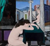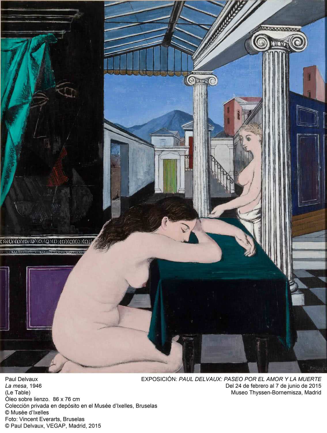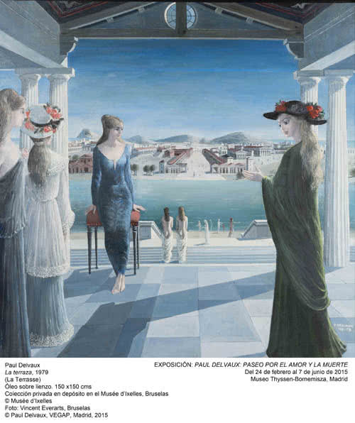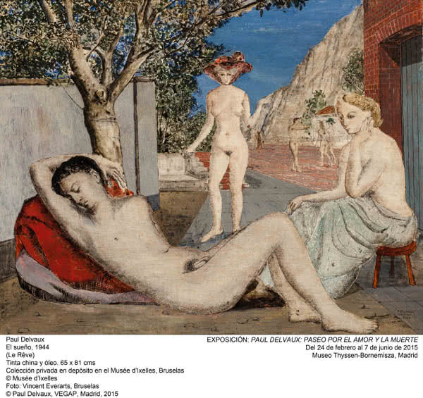 Tras una primera etapa marcada por el expresionismo flamenco, Delvaux descubrió el surrealismo y experimentó la influencia de Magritte y Giorgio de Chirico. El mundo de Delvaux tiene un inconfundible carácter onírico. Sus figuras femeninas vagan como sonámbulas por escenarios nocturnos, ofreciendo a la mirada del espectador su desnudez a la vez fría y sensual.