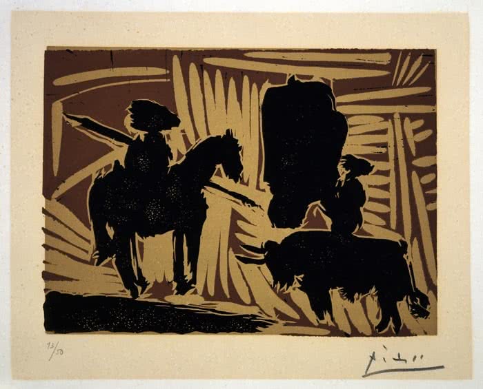 Recurrió a la litografía, sobre todo, a partir de 1945, auxiliado por Fernand Mourlot. Y cuando Picasso se instaló en el Midí francés trabajó el linograbado con el impresor Arnéra entre 1959 y 1963.