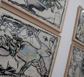 Láminas y atlas escolares, tickets y facturas, viejos sobres, títulos bursátiles… Alechinsky hace uso de un amplio elenco de «superficies encontradas» sobre las que plasmar sus dibujos, en blanco y negro o en colores brillantes. Fascinado por la pureza incontaminada del Art Brut, que Dubuffet ensalzó, Alechinsky trata de escapar de cánones y normas expresivas que se le hacen demasiado pesadas, jugando y explorando en busca de un arte libre del peso de la tradición.