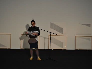 Itziar Okariz hace uso habitual de la amplificación y el delay como medios expresivos junto a la voz y al cuerpo. En esta ocasión, trabaja con el espacio y el público mediante el uso del aplauso. Este gesto y sonido está estrechamente codificado y controlado; rara vez es espontáneo y tiene sus tiempos e intensidades, con un significado concreto en auditorios y teatros. Sin embargo, el aplauso puede tener otro significado, como cuando se inicia para dar por terminada una acción que ha dejado de interesarnos o cuando ocurre lentamente como señal de escarnio.