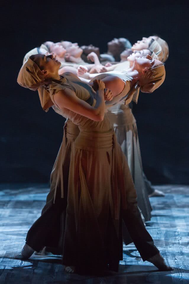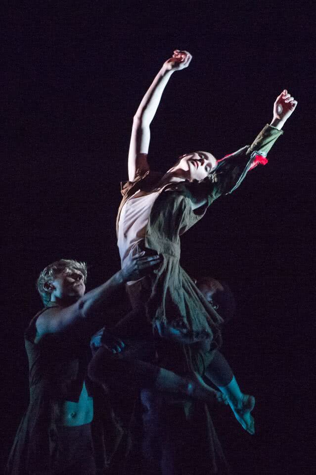 El programa se compone de tres coreografías (cuatro para el Barbican Center) y Rojo actúa en la primera y la tercera (aunque no en todas las funciones que se harán en nuestro país). La primera es No man’s land, de Liam Scarlett, basada en la técnica clásica pero en la que la narrativa es muy importante. Va acompañada de fragmentos de Harmonies poétiques et religieuses, de Franz Listz, y está ambientada en una fábrica, con reliquias de bombas y metralla. Está interpretada por siete parejas y resalta el papel de las mujeres, a las que les tocó hacer el trabajo de los hombres que se tenían que ir a luchar.