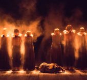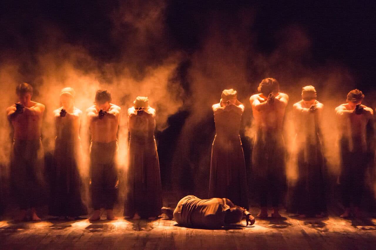 La tercera coreografia, Dust (Polvo), de Akran Khan, es muy diferente a las anteriores. «Se trata de kata, un estilo que mezcla la danza contemporánea con la de Bangladesh. Es la más difícil para los bailarines de la compañía, en la que estuvieron trabajando seis meses, frente a lo normal que son cuatro o seis semanas. He seguido a Akham mucho durante muchos años y su trabajo siempre me ha parecido muy interesante. Por eso he querido llevarlo al English National Ballet», ha explicado la bailarina española. En la coreografía puede escucharse al propio soldado, Edward Dywer, hablando sobre su vida como militar y cantando la marcha We´re here because we´re here, que inventaron los propios soldados. La escena inicial de Dust se inspira en el sistema mecánico del cuerpo que creó originalmente Dimitris Papaioannou.