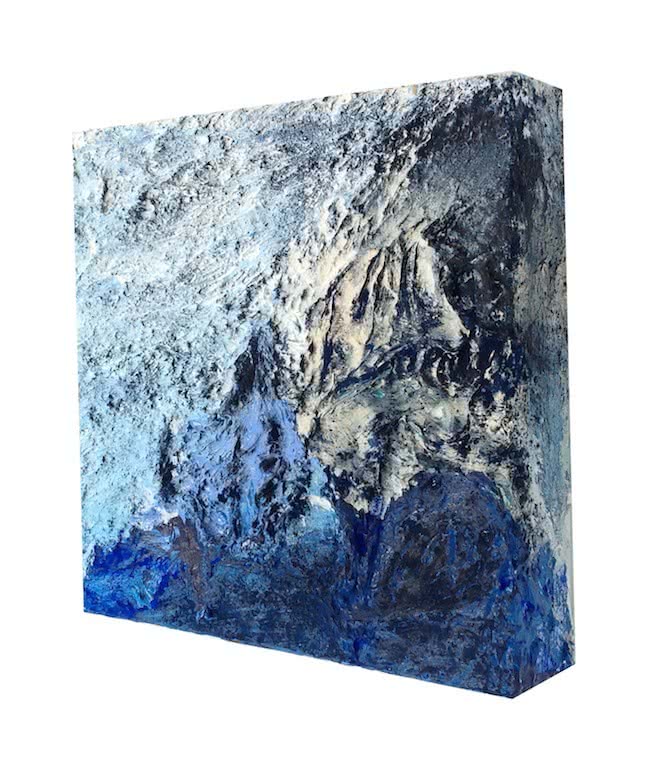 La muestra está impregnada por una sensación de profundidad visual y ofrece una vista tridimensional que transforma el medio de dos dimensiones en piezas escultóricas. Varios de los ‘objetos pintados’ se instalan en el suelo, a fin de formar una instalación de pinturas. Dentro de esta construcción de azul, cada cuadro es un aspecto integral de una obra mayor y más compleja.