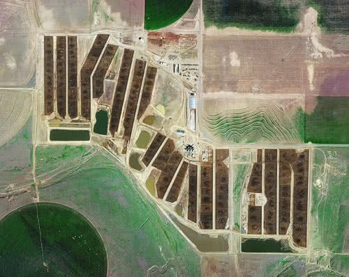 La obra de Mishka Henner (Bruselas, 1976) se basa en la adopción sistemática de imágenes producidas por Internet, a través de las cuales el artista fija su atención en aquellas zonas oscuras y controvertidas que el poder político y económico pretende evadir u ocultar. Por ejemplo, en la serie The Fields (2013- 2014), Henner utiliza cientos de imágenes de Google Earth para exhibir, a gran escala, la alteración del paisaje natural provocada en EE.UU. por dos grandes ejes de su industria: el petróleo y la carne.