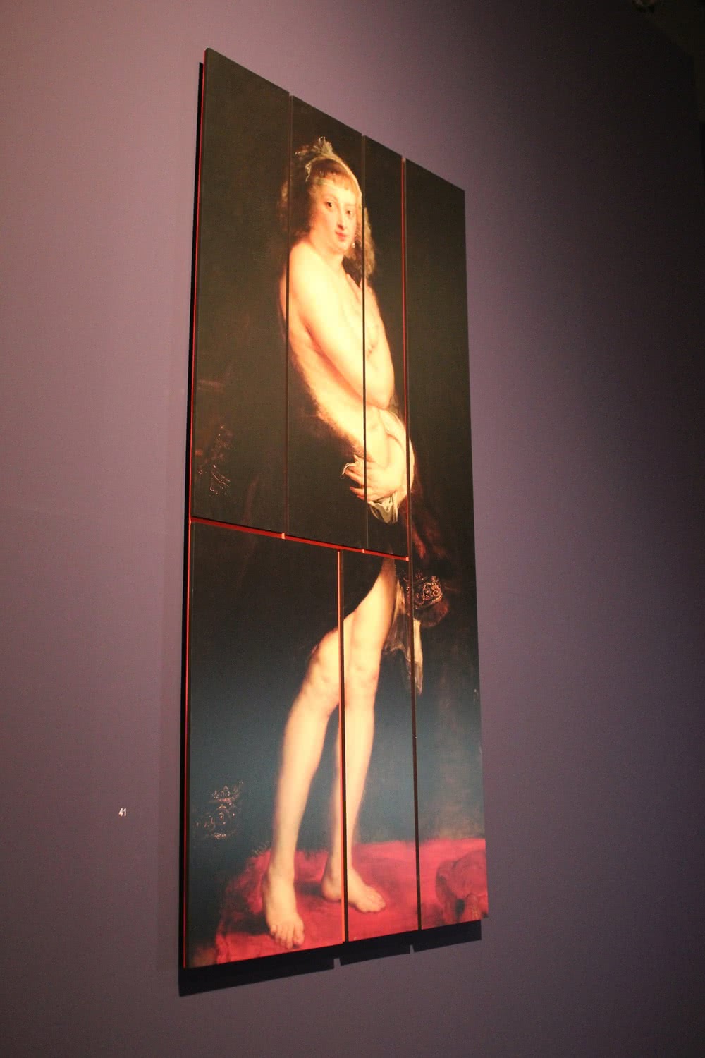 Más tarde aparecería Helena Fourment, la joven más bella de Amberes según sus coetáneos. Rubens quedó prendado ante su belleza, casándose con ella en 1630. Él tenía 53, ella 16. El artista vivió una segunda y gloriosa etapa en su pintura con una nueva musa que insufló gasolina en una carrera que en su última etapa estaría centrada más en los retratos y paisajes. De entre las numerosas pinturas que el maestro dedicaría a su segunda y joven esposa, rebosantes de sensualidad, destaca la copia exhibida de La piel, cuyo original reposa en el Kunsthistorisches Museum de Viena, en la que Fourment es retratada semidesnuda, cubierta solo con un manto de piel y mirando no al espectador, sino al pintor. Una reciente restauración y escaneos con rayos X han desvelado en el fondo del lado derecho una fuente en cuyo pedestal destaca una suerte de Manneken Pis que encerraba connotaciones eróticas, además de un significado simbólico de la fertilidad.