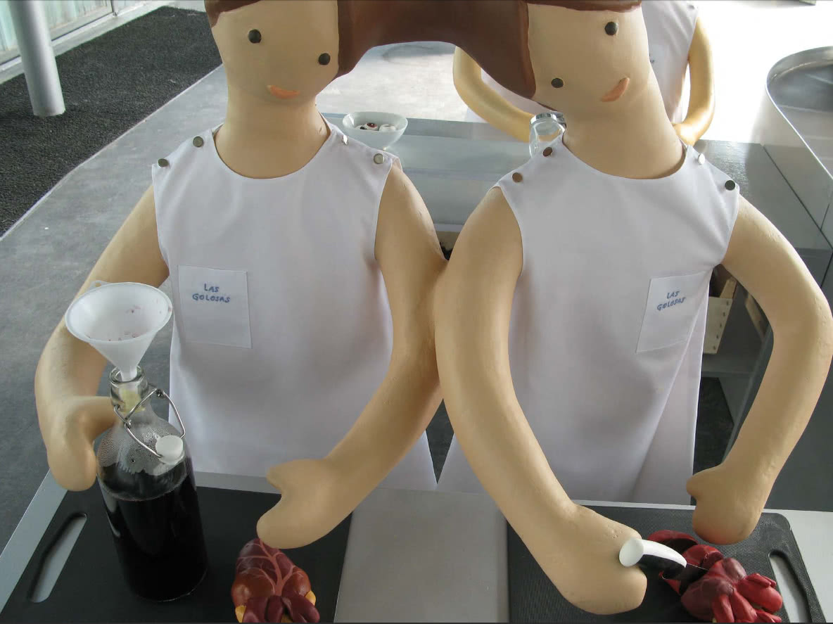 Las siamesas Golosas están formadas por restos humanos. Sara Li y Ana K nacen, por tanto, del ensamblaje de fragmentos corporales, como una especie de Frankenstein. De esta unión de partes surge un ser doble. Y por esta doble condición física, las siamesas representan la identidad múltiple frente a una identidad única, pero también, puesto que se apartan de la “normalidad”, simbolizan lo monstruoso, lo excluido.
