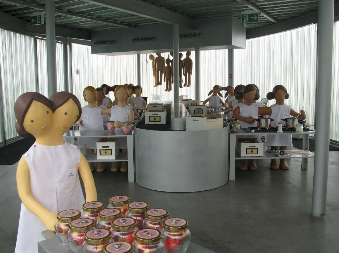 La Fábrica no cocina y envasa frutas o verduras sino fragmentos humanos. Sin embargo, y a pesar de su apariencia caníbal, las siamesas no desean comerse a nadie. Estos trozos humanos representan sus sentimientos: el dolor, el sufrimiento, la rabia, etc. Es, por tanto, un régimen de símbolos, una forma de poner sobre la mesa sus miedos para así enfrentarse a ellos. Se puede decir que lo que en realidad cocinan las siamesas son sus propios sentimientos.