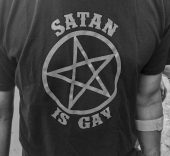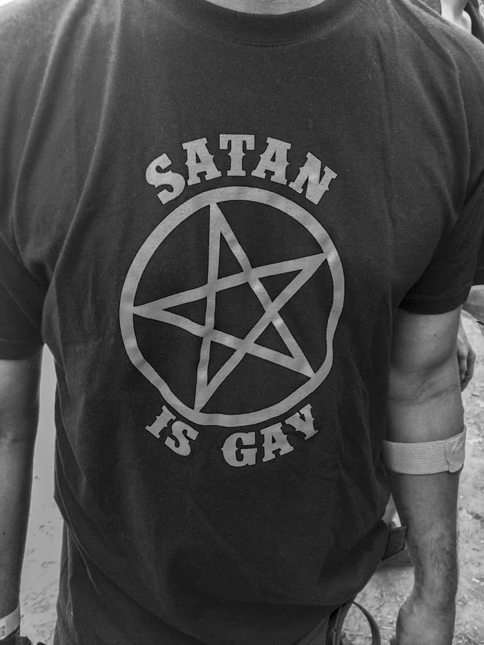 El logotipo del documental The Black Mark es de Christophe Szpajdel, un diseñador famoso dentro del metal extremo que publicó hace años un libro llamado The Lord de Logos y que ha hecho logotipos para todas las grandes bandas. Saraiba le conoció en un festival en Portugal, le contó la idea, y él accedió a hacerle el logo por 20 euros. “Es algo muy bonito y muy underground. Te das cuenta de que cuando te mueves por esos círculos las cosas son mucho más sencillas, más baratas y más accesibles”. Imita al de una banda de black metal, y con él el artista hizo parches que ha ido dando a todos los hombres gays que ha ido conociendo en festivales: “Me parecía divertido crear como un nuevo símbolo de la homosexualidad que no tuviera arco iris y que supusiera empezar desde cero”.