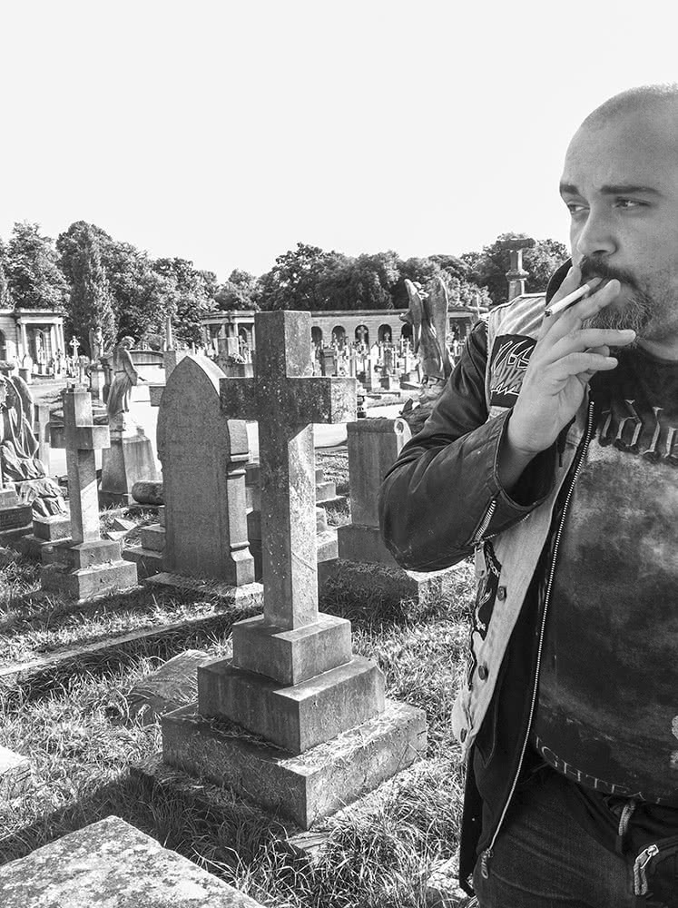 Con él, el artista quería reivindicar el formato analógico y demostrar cómo todavía hoy se puede hacer algo con poco. Le encanta Instagram, y hasta se declara un adicto, pero cree que no debemos olvidar que hay otros formatos. Tenía que ser, además, en blanco y negro, como en blanco y negro son las portadas de los discos de estos grupos y también sus camisetas: “Todo es de estos colores porque no hay dinero, se hace barato y fotocopiado y así se crea una estética de lo roto, de lo viejo, de lo cutre y de lo que no importa que es inmortal. La foto en blanco y negro es atemporal y algunas parece que son de hace 20 años”.