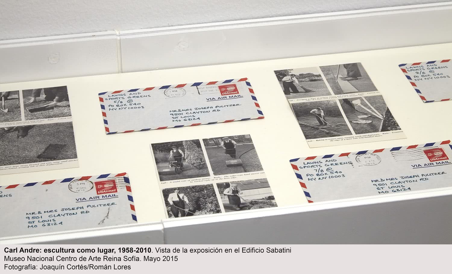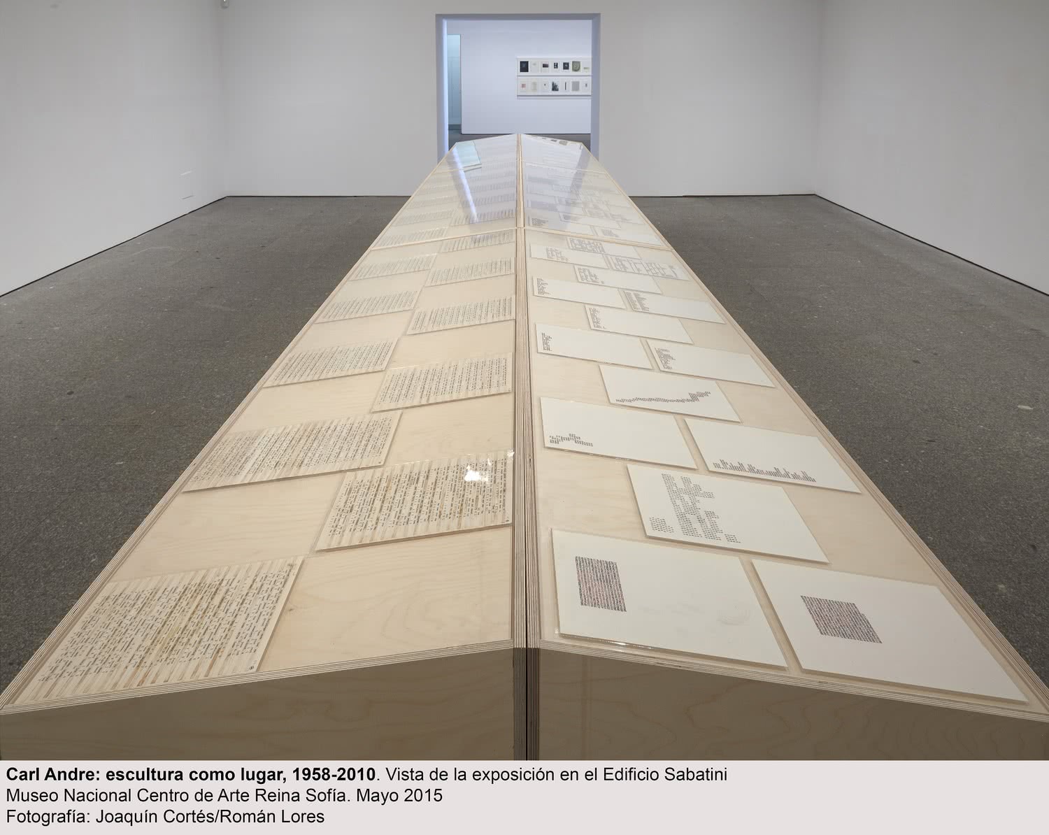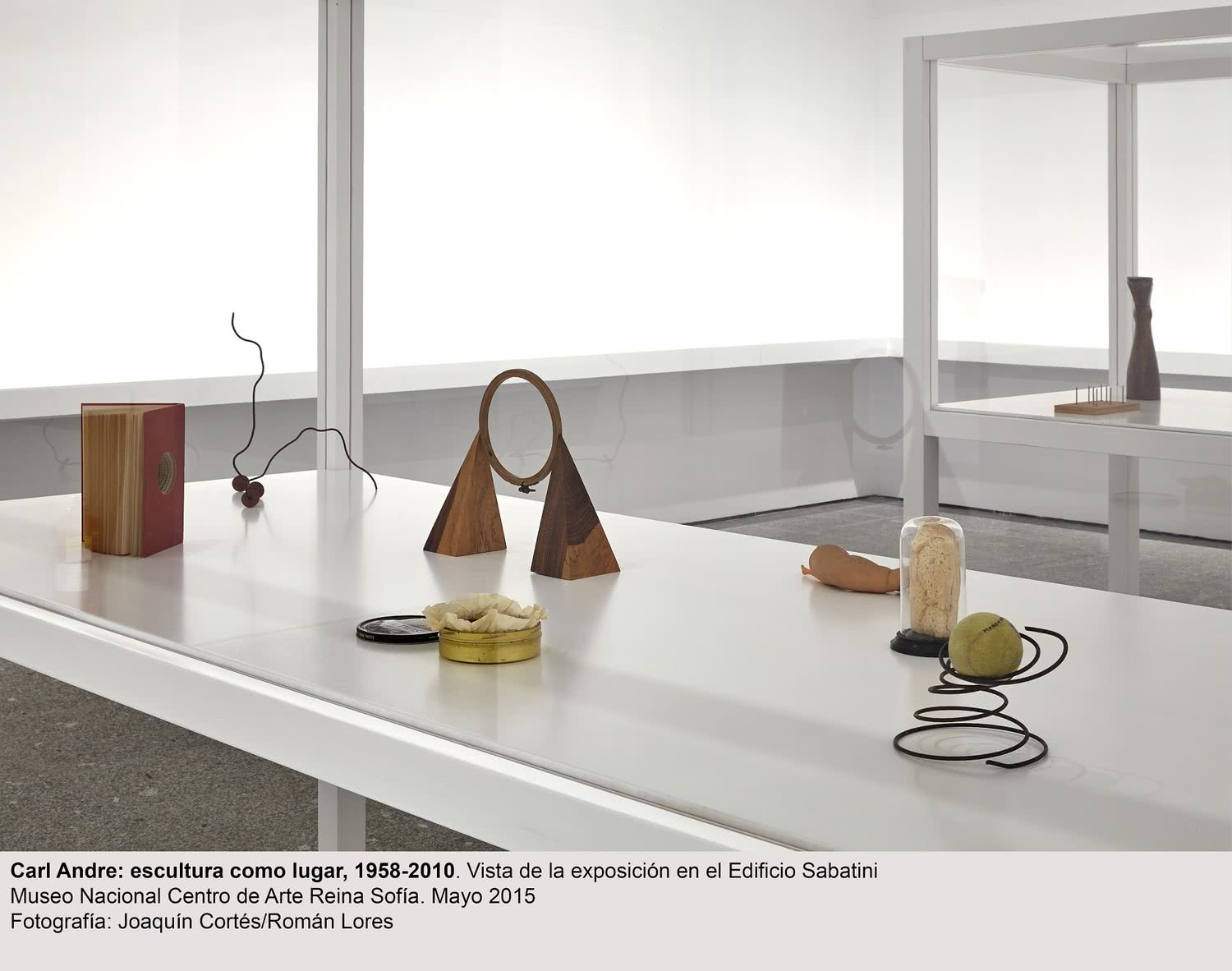 La muestra puede visitarse en dos espacios diferentes: el Palacio de Velázquez del Parque del Retiro, que acoge del 5 de mayo al 12 de octubre esculturas del artista; y la planta tercera del Edificio Sabatini del Museo Reina Sofía, que expone del 6 de mayo al 28 de septiembre objetos efímeros, postales, ensamblajes y obras de poesía visual de Andre.