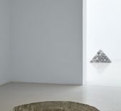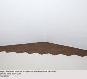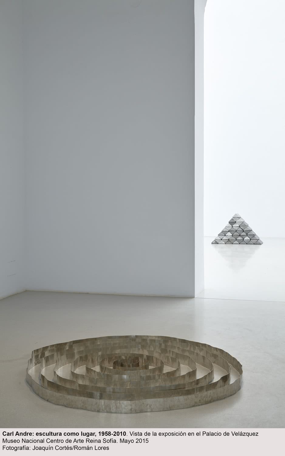Esta gran retrospectiva expone en el Palacio de Velázquez piezas capitales como Pyramid (Square Plan) (1959), una de las poca supervivientes de su etapa de pirámides de madera; Lever (1966), una hilera de 137 ladrillos refractarios dispuesta a ras de suelo; 46 Roaring Forties (1988), un corredor de metal que el artista creó en Madrid; y Uncarved Blocks (1975), una secuencia combinatoria de maderas inalteradas, idénticas.
