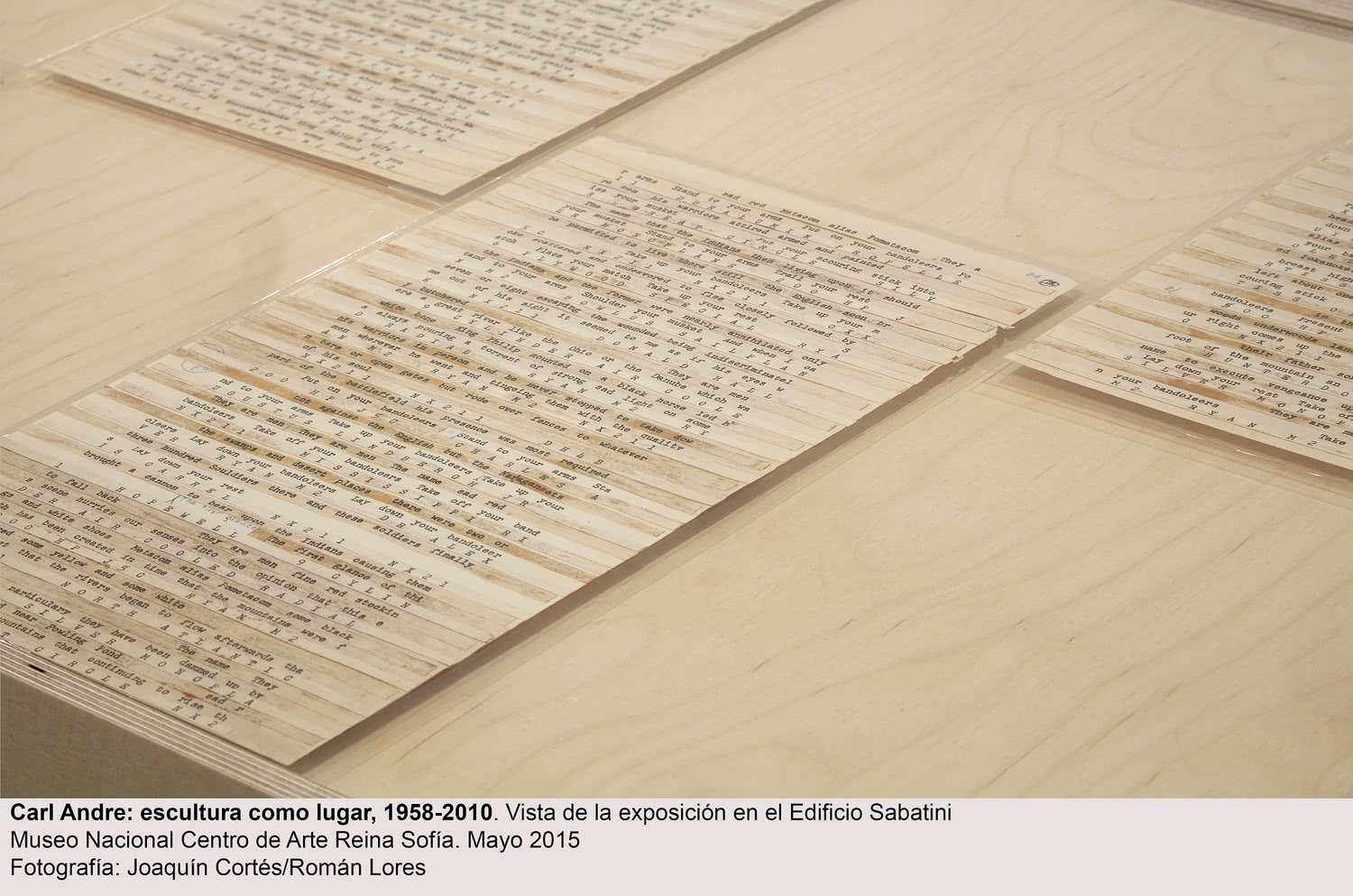 La exposición abarca los últimos 50 años de creación de Andre, desde sus obras más influyentes hasta ejemplos más singulares de su práctica artística. También reúne, por primera vez en 20 años, un grupo excepcional de objetos titulados Dada Forgeries, que manifiestan su jocosa relación con los ready-made de Marcel Duchamp.