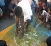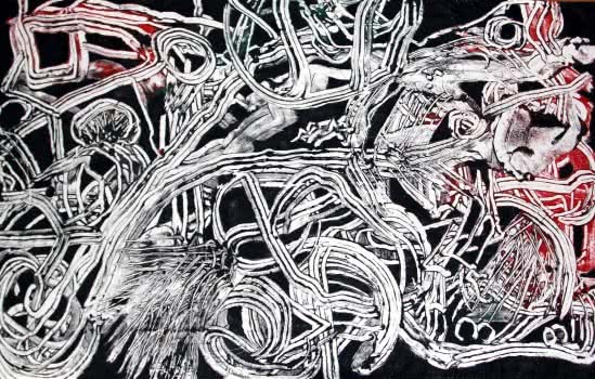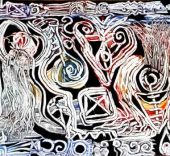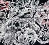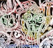 La muestra incluye pinturas realizadas a la intemperie, en lugares públicos, en el irónicamente llamado Happy Land, un gran vertedero de basura en Manila, y reúne muchas de las características propias de sus trabajos: el rendimiento, la participación del público, el uso de partes del cuerpo para pintar; técnicas surgidas durante su tiempo en prisión y que reflejan, una vez más, su trabajo en la cárcel, donde el uso de material de contrabando y las partes del cuerpo que sustituían al pincel eran sus mayores herramientas.