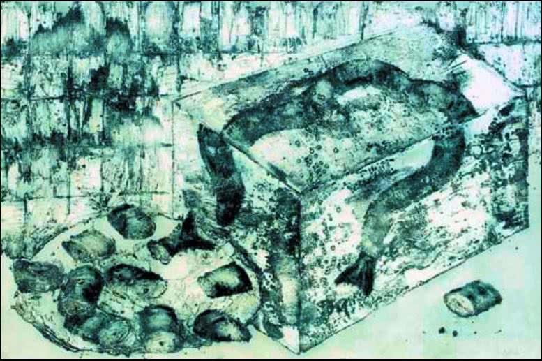 Por último destaca la obra de Miquel Barceló (Felanich, Mallorca, 1957) de marcado expresionismo y aglutinadora de influencias como Joan Miró, el action painting de Pollock, el informalismo de Tàpies, el arte conceptual y el art brut. Entre las características de su obra hay que destacar la inspiración en la naturaleza, su flora y su fauna. Los grabados exhibidos en la muestra representan peces y anguilas.