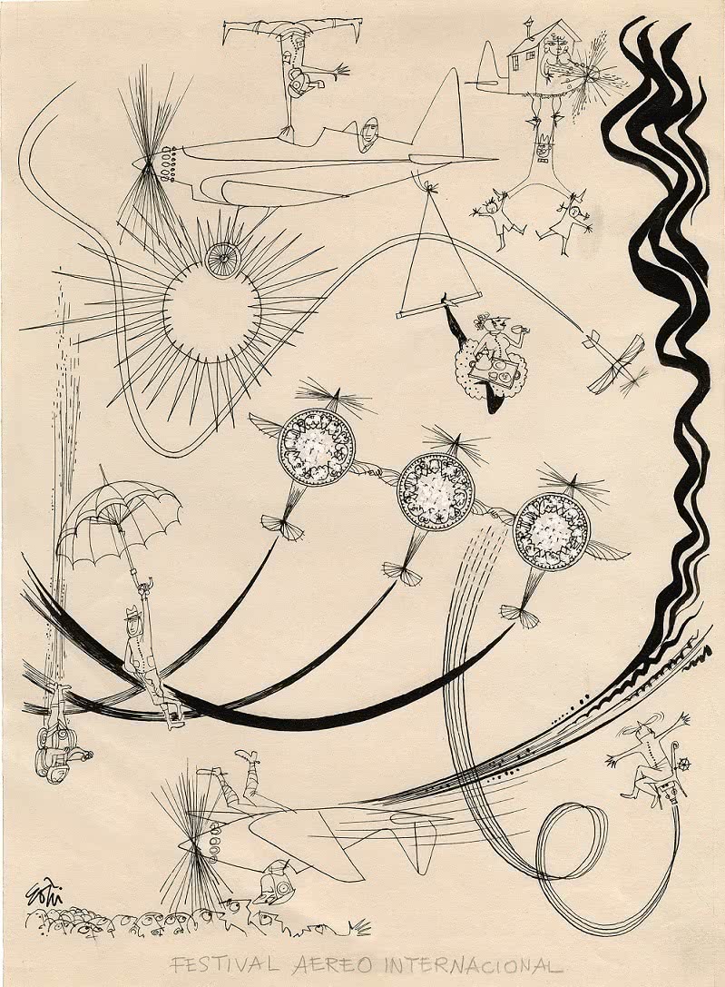 Este es el punto de partida de Pasión por volar, una muestra que recoge la historia de los grandes logros y pequeños fracasos de la aviación española, marcada por una premisa, la investigación. La exposición, que está dividida en cuatro secciones, está compuesta por 50 dibujos de la Colección ABC firmados por grandes nombres como Xaudaró, Carlos Sáenz de Tejada, Gila o Chumy Chúmez.