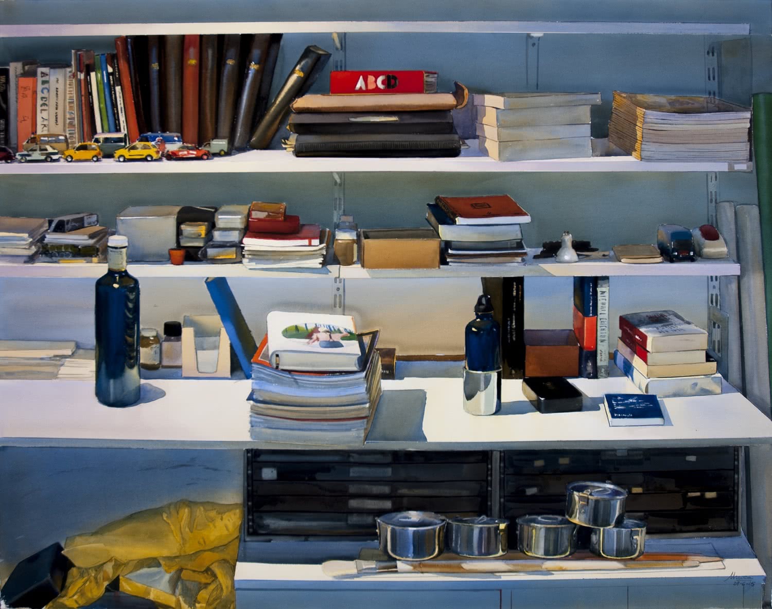 A través de cuadros de gran formato, el artista adentra al visitante en el interior de su estudio. Pinta para él, pero al mismo tiempo comparte su vida a través de sus espacios y objetos personales, donde el contraste de luces y los efectos producidos por los reflejos de las ventanas y objetos que le rodean invita a compartir la intimidad de un lugar casi sagrado.