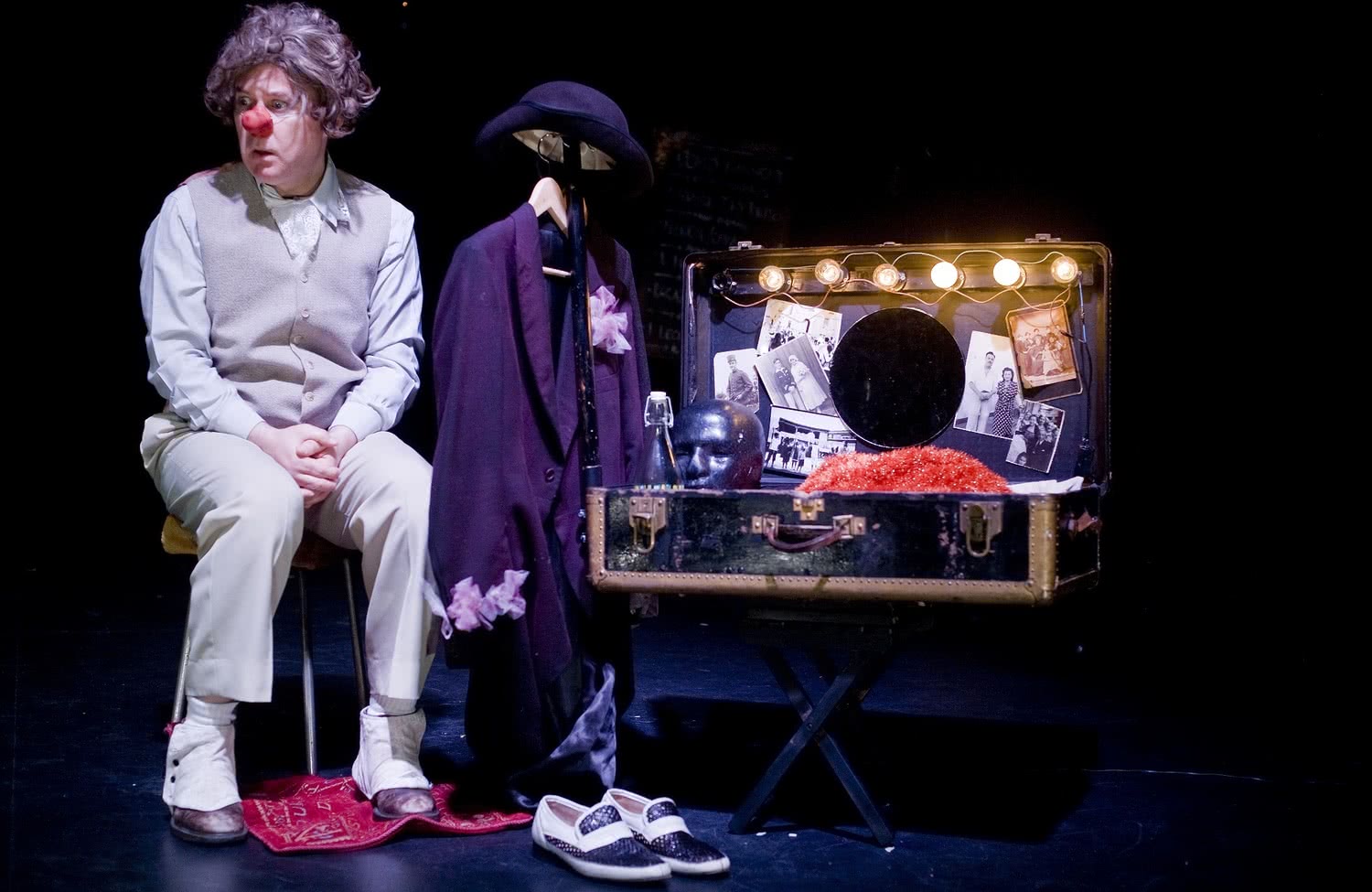 Bermejo se mete en la piel de un payaso que espera su turno para actuar en el día del festival de homenaje al circo. En el foso, mientras aguarda a que lo saquen al escenario por una trampilla, repasa en soledad los momentos de su pasado, la relación con su familia y los hechos y personas que le marcaron en el circo donde nació.