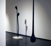 Así, el artista presenta obras como Mercurio en movimiento, una gran escultura a través de la cual reflexiona sobre el concepto del movimiento en el elemento fluido capturando el momento de tránsito y atracción en el que dos gotas de mercurio se unen en una sola; y otras como Gota fluida o Asimetría convexa.