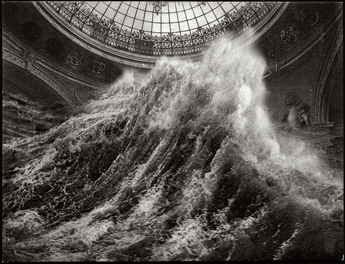 Este método se ha convertido en una de las señas de identidad del trabajo de Genovés, que comienza con la selección de instantáneas de arquitecturas nobles tomadas a finales del XIX y principios del XX. En las imágenes aparecen iglesias, catedrales, palacios, teatros, bibliotecas y museos de los siglos XVII y XVIII, que son invadidos por imágenes de fenómenos naturales: olas gigantescas, hielo, fuego, humo, piedras, barro…
