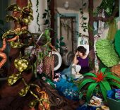 En Tierra natal, la artista convierte escenas tan caseras, rutinarias y alejadas del glamour como tejer, cocinar o descansar en el sofá en momentos mágicos, mientras que en la serie El séptimo día crea paisajes fantásticos en espacios domésticos, siempre con Australia de fondo, país al que emigró con su familia en la infancia.