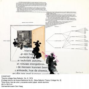 La muestra, organizada junto con el Gemeentemuseun de La Haya y con la colaboración de la Fondation Constant y el RKD (Netherlands Institute for Art History), tiene como núcleo fundamental a Nueva Babilonia como obra de arte en el contexto en el que se concibió entre 1956 y 1974, por lo que se completa con reconstrucciones, fragmentos de películas históricas y materiales de archivo.