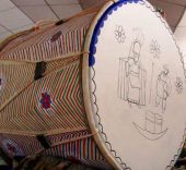 Sobre la piel de borrego como soporte de los cuadros se han plasmado las fiestas religiosas, las actividades cotidianas tradicionales y el ciclo vital, pero también hay temáticas más reivindicativas, como los levantamientos indígenas. En definitiva son obras en las que aparecen reflejadas la cultura y cosmovisión kichwas, y su tradicional modo de vida.