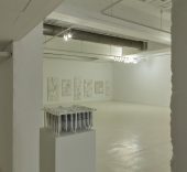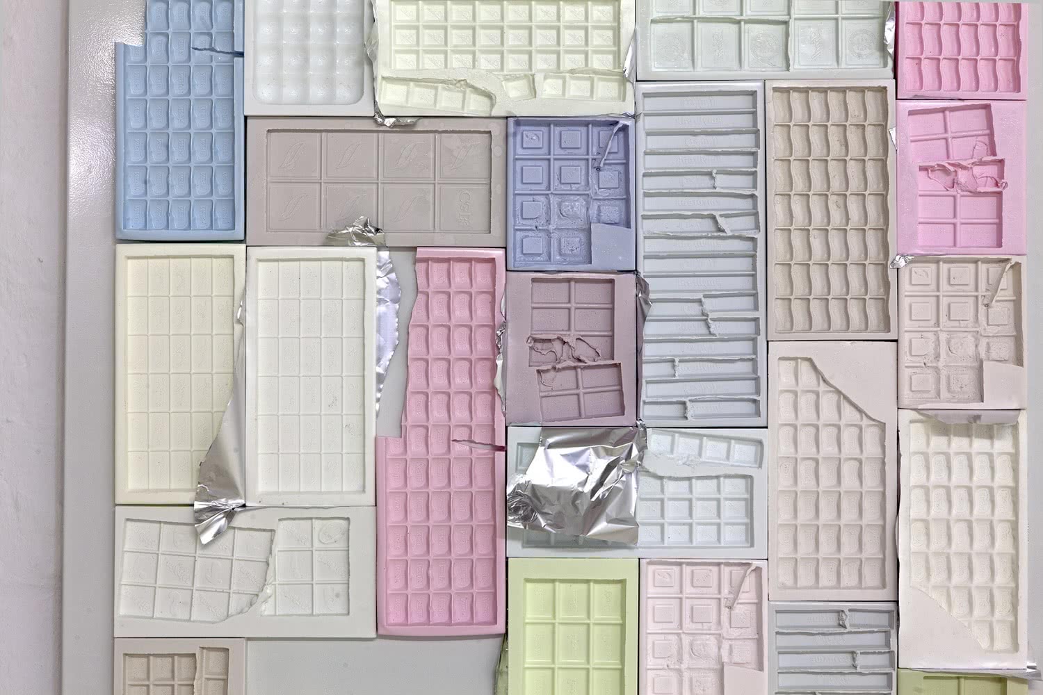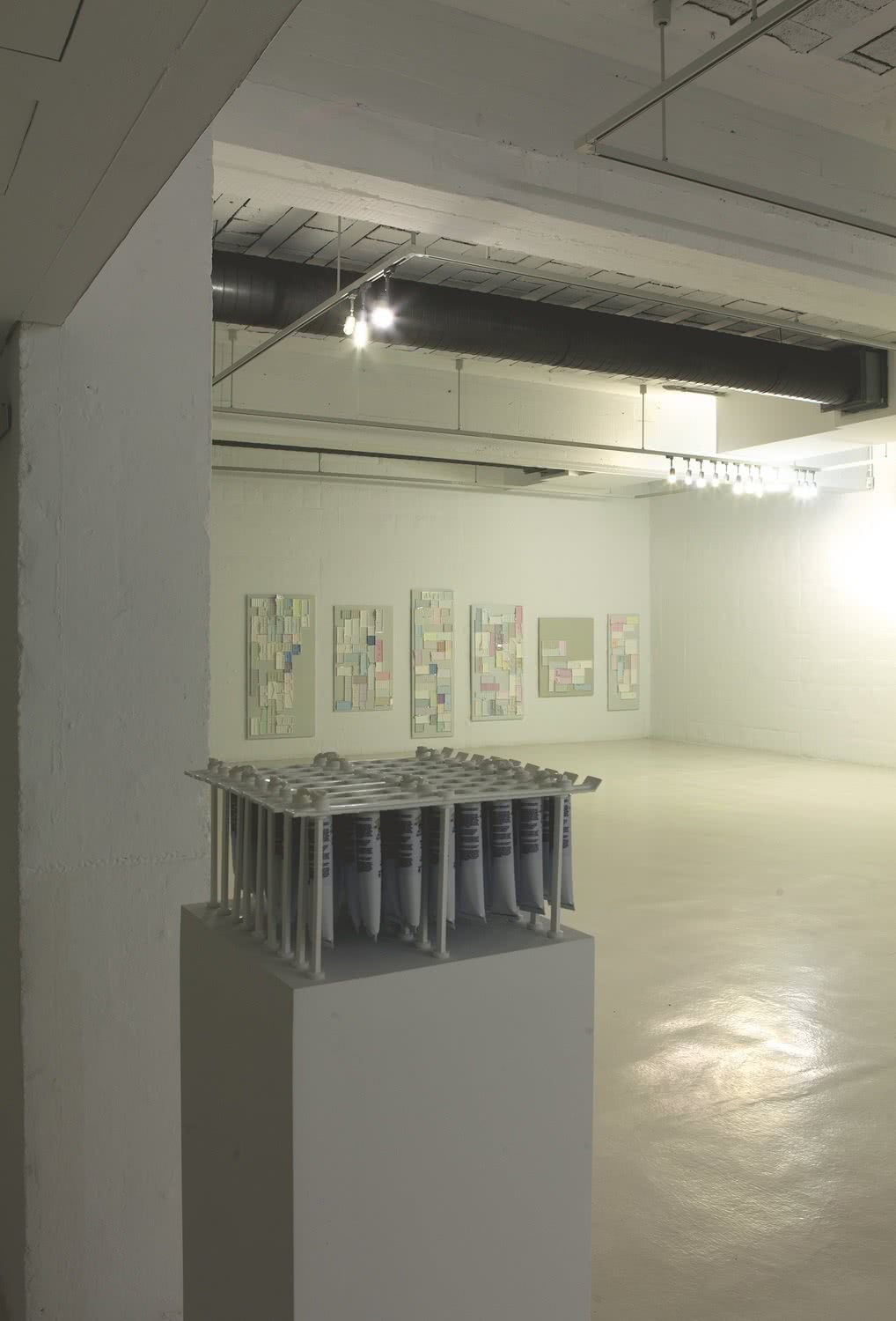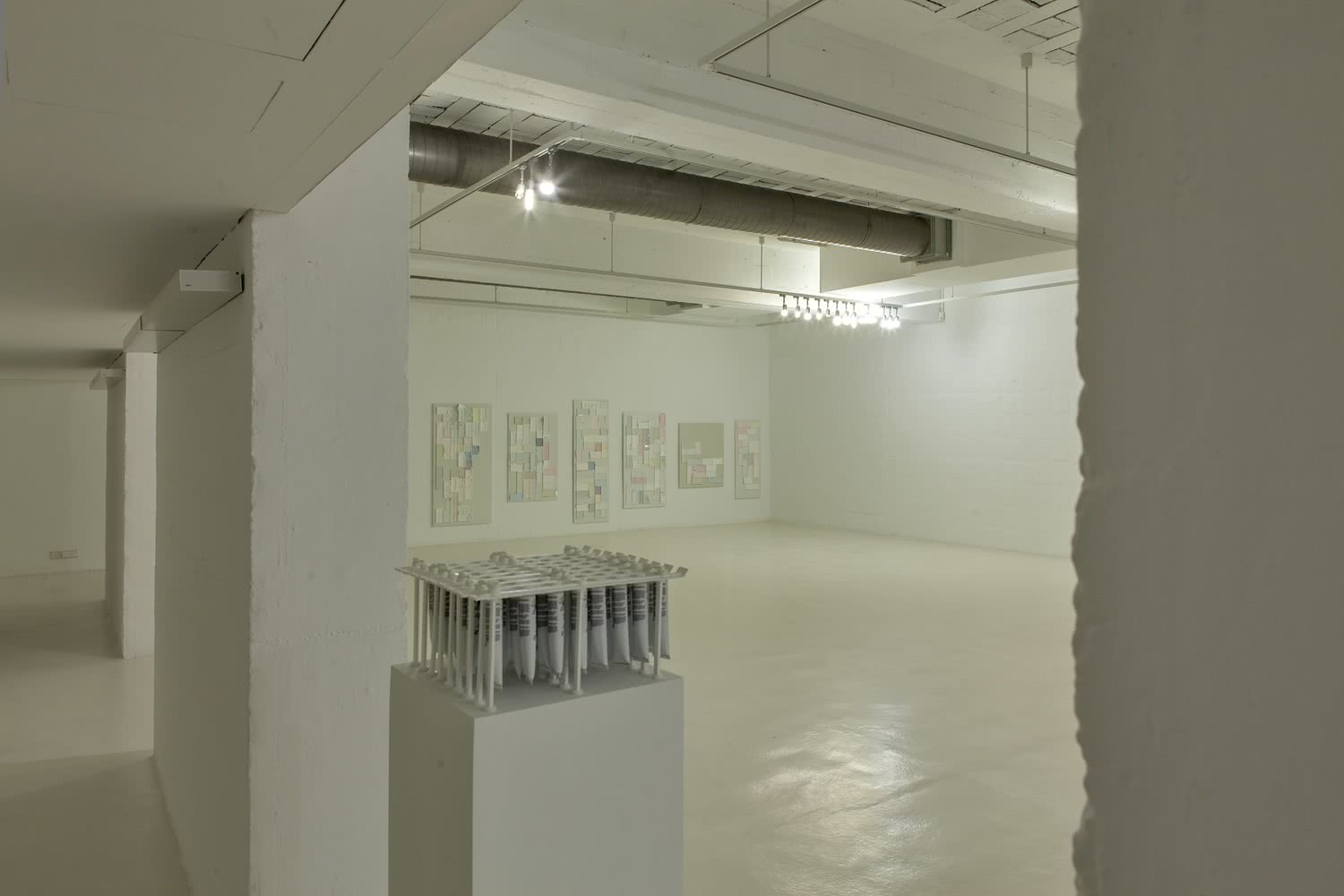 Además de revisar los materiales artísticos, el artista gallego también reexamina los elementos del montaje, interviniendo en la iluminación o la sonorización de la sala como parte de la obra expuesta. Completan el conjunto otros dispositivos que implican una reflexión sobre la temporalidad y el proceso, como por ejemplo unas planchas metálicas con construcciones abstractas que ocupan las paredes o unos moldes para tabletas de chocolate generados a partir de tabletas individuales, en una inversión poética del proceso de producción habitual.