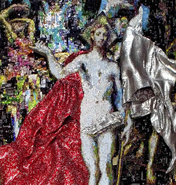 Creaciones únicas, producidas con materiales corrientes, como latas industriales, que se transforman en un material nuevo que se asemeja a telas de lujo o incluso a pinturas policromadas. Materiales reciclados que adquieren una nueva vida en las manos del escultor, cuyas obras reflejan, a través del drapeado metálico y el brillo de los tonos de colores fríos y cálidos, la tensión, la pasión y la densidad dramática… rasgos todos ellos de las obras del Greco.
