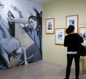 Vicente es un gran narrador, una característica que se refleja en estas ilustraciones de acrílico sobre papel gracias a la suma de realismo, sentimientos y psicología. La generosidad de los detalles hace que el espectador sea capaz de penetrar en cada escena y en cada personaje retratado. El ilustrador madrileño hace un guiño al Guernica de Picasso, con una imagen realista del desgarrador cuadro del pintor malagueño. «He tratado de hacer una aproximación decorativa a la obra de Picasso, porque es para las guardas del libro», concluye.