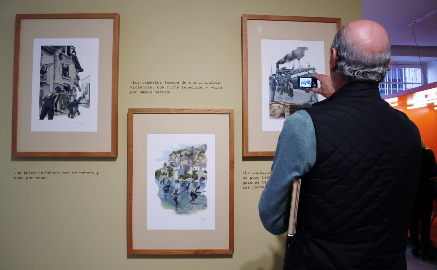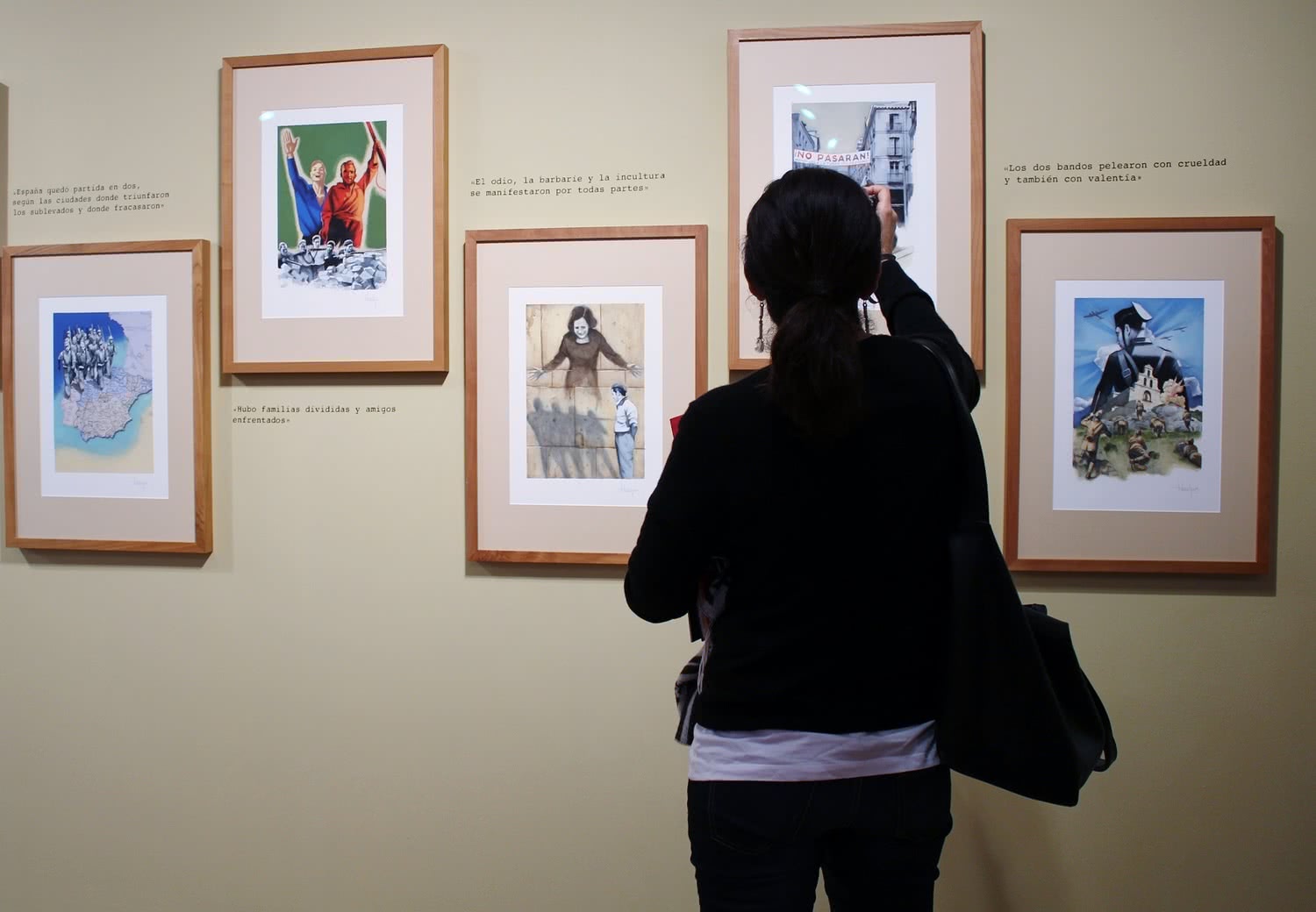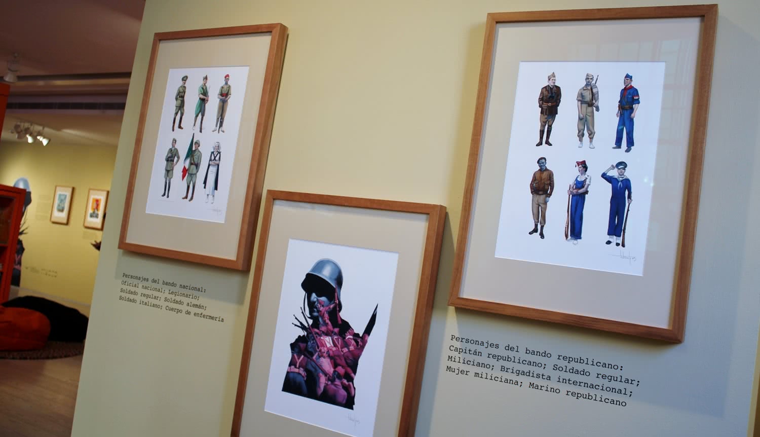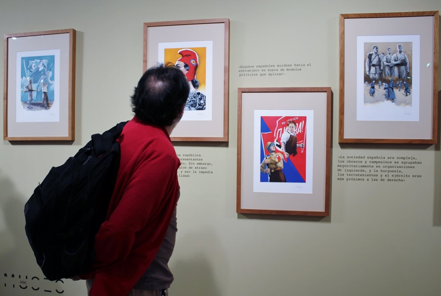 Este volumen explica de forma concisa y objetiva, sin clichés partidarios ni etiquetas simples. Durante meses, escritor y artista han trabajado mano a mano para recuperar la historia, y así queda reflejado también en la exposición que exhibe la planta baja del Museo ABC. «Cuando me hicieron el encargo me di cuenta de que tras 30 años de ilustrador he reunido mucha documentación pero no tenía nada de la Guerra Civil», explica Vicente.