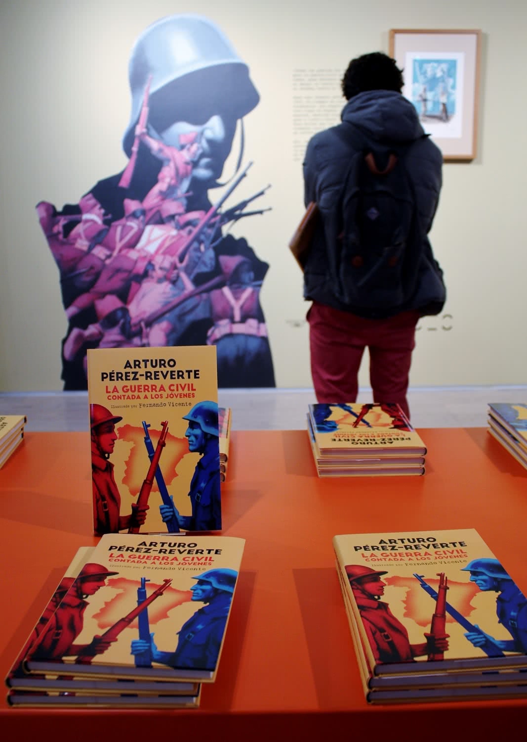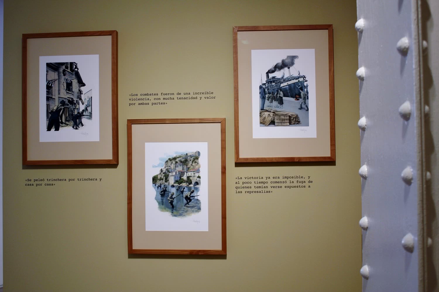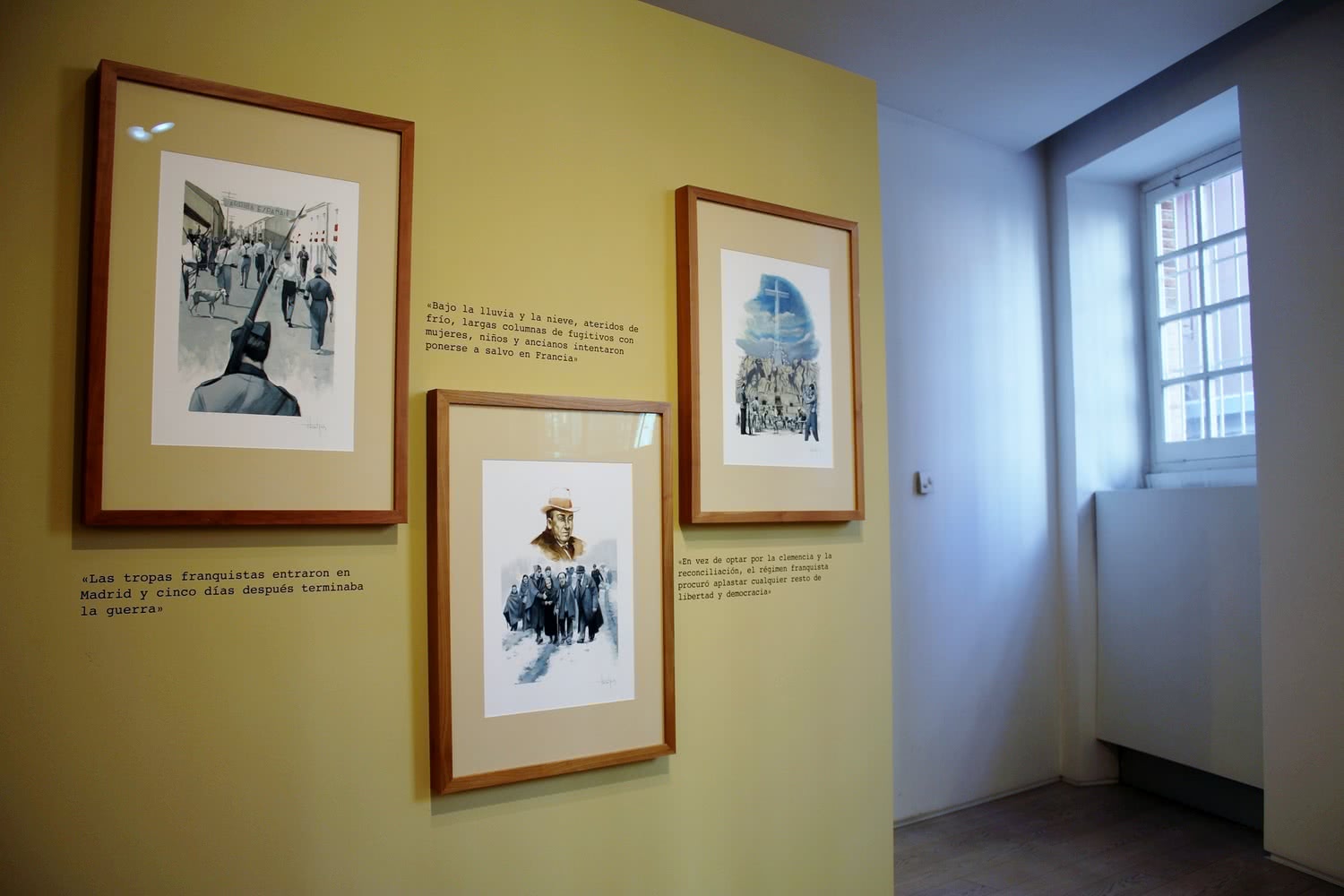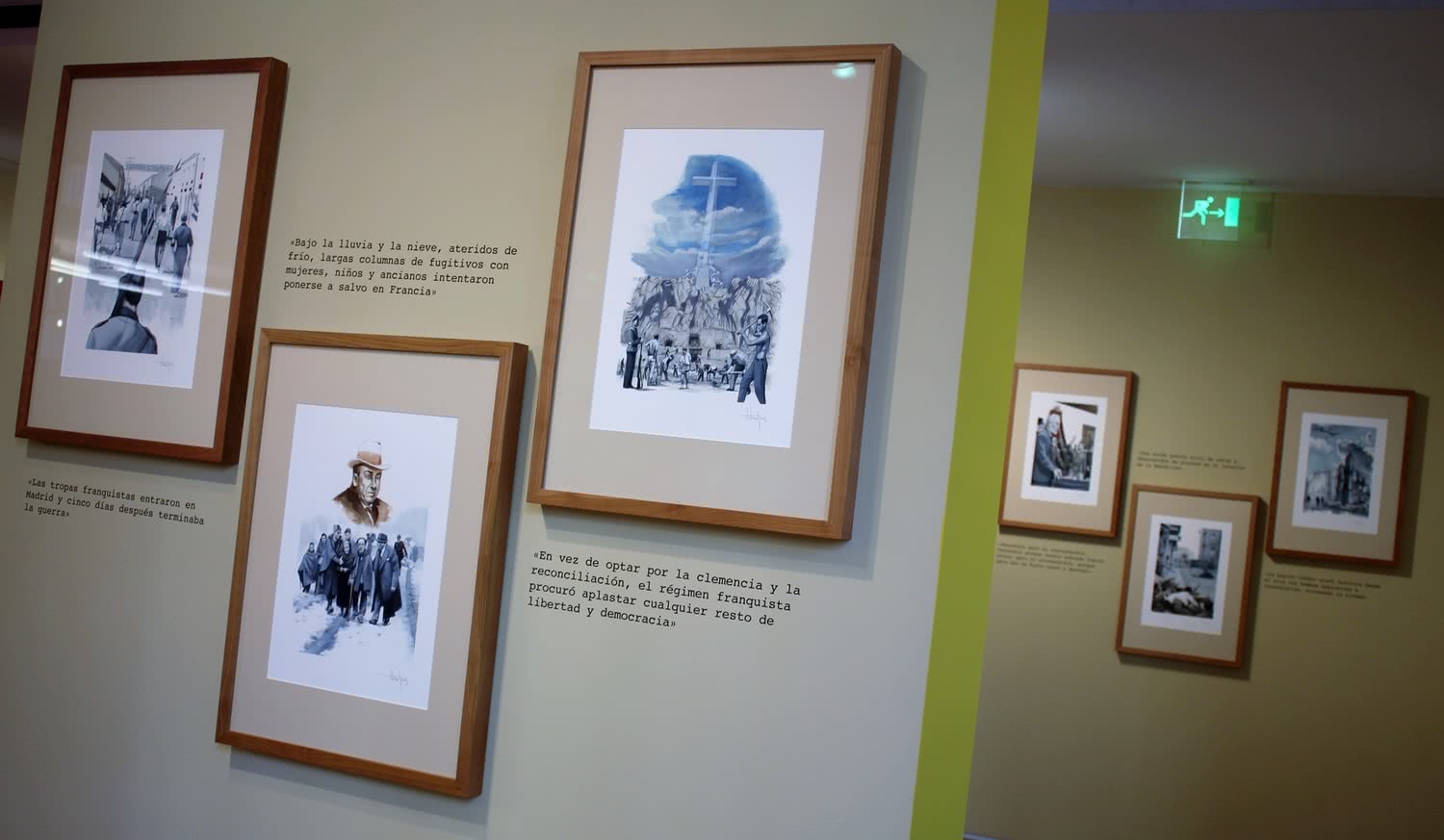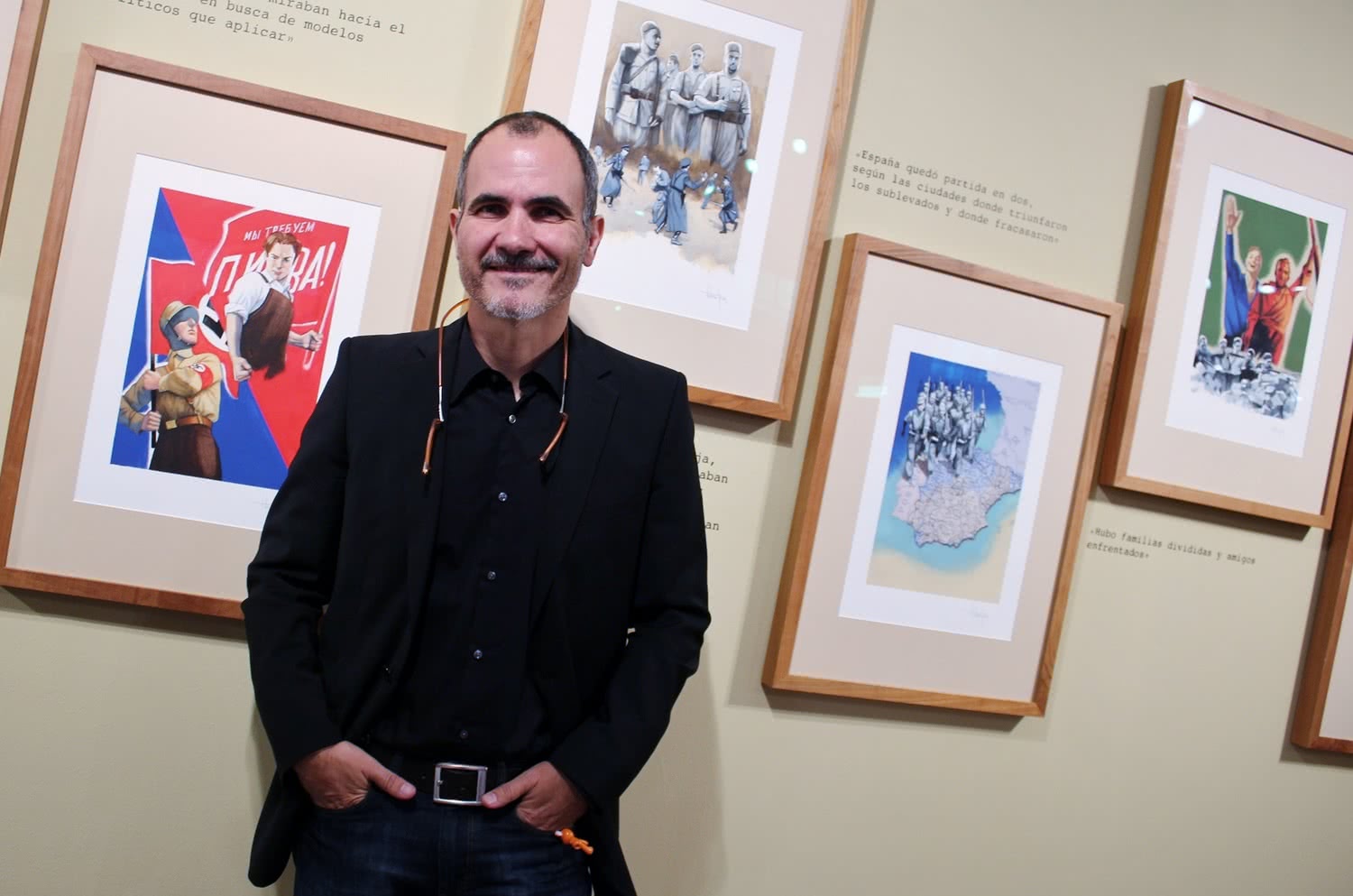 Este volumen explica de forma concisa y objetiva, sin clichés partidarios ni etiquetas simples. Durante meses, escritor y artista han trabajado mano a mano para recuperar la historia, y así queda reflejado también en la exposición que exhibe la planta baja del Museo ABC. «Cuando me hicieron el encargo me di cuenta de que tras 30 años de ilustrador he reunido mucha documentación pero no tenía nada de la Guerra Civil», explica Vicente.