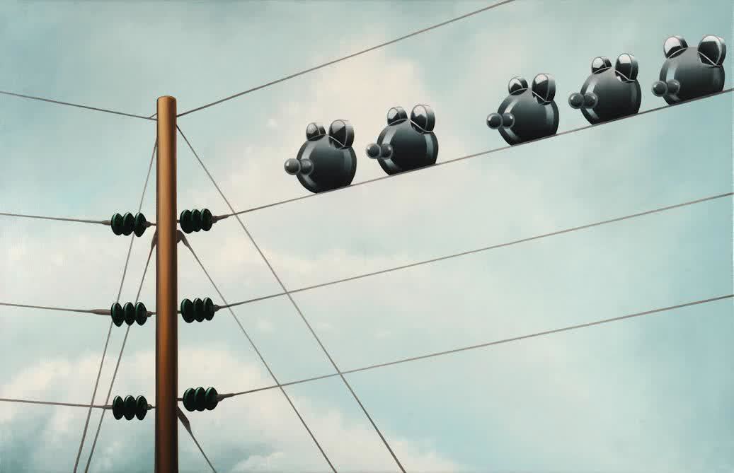 Un momento culminante en este camino es la obra Birds, ganadora del XVIII Premio de Pintura “Ciutat d’Algemesí”, que reinterpreta una escena de Los pájaros de Hitchcock y marca un periodo de plenitud en este recorrido por casi dos décadas de creación a través de la figura estandarizada del célebre roedor animado.
