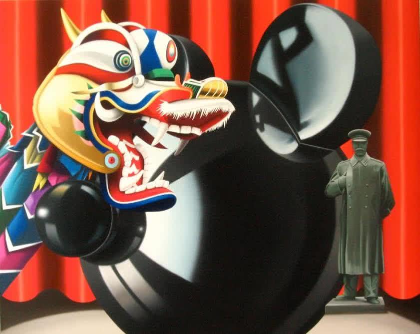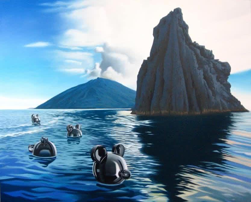 Fue en Venecia donde apareció por primera vez la figura de Mickey Mouse en la obra de Cuéllar, como una máscara de carnaval que va evolucionando en sus trabajos hasta convertirse en un prototipo, un icono/producto/criatura que se expande de manera viral en escenas inquietantes con las que el valenciano realiza su análisis de la realidad.