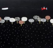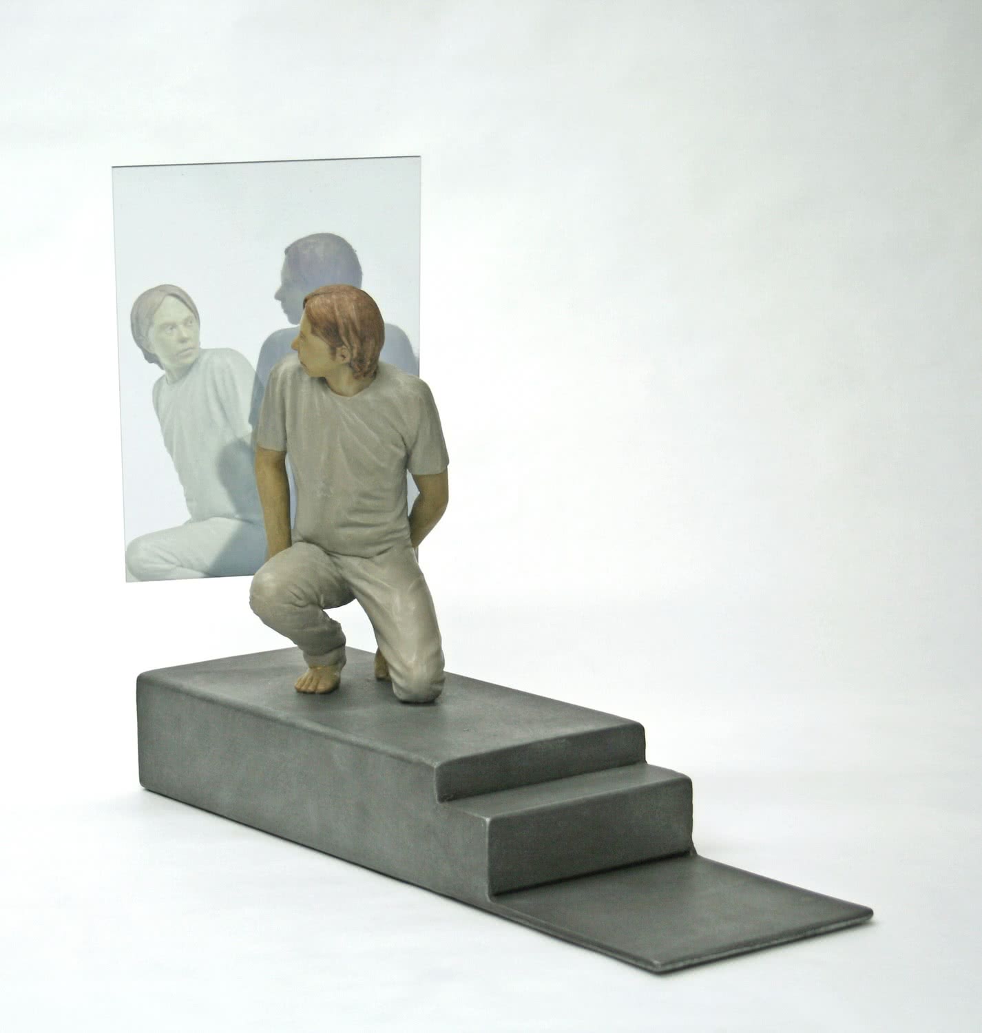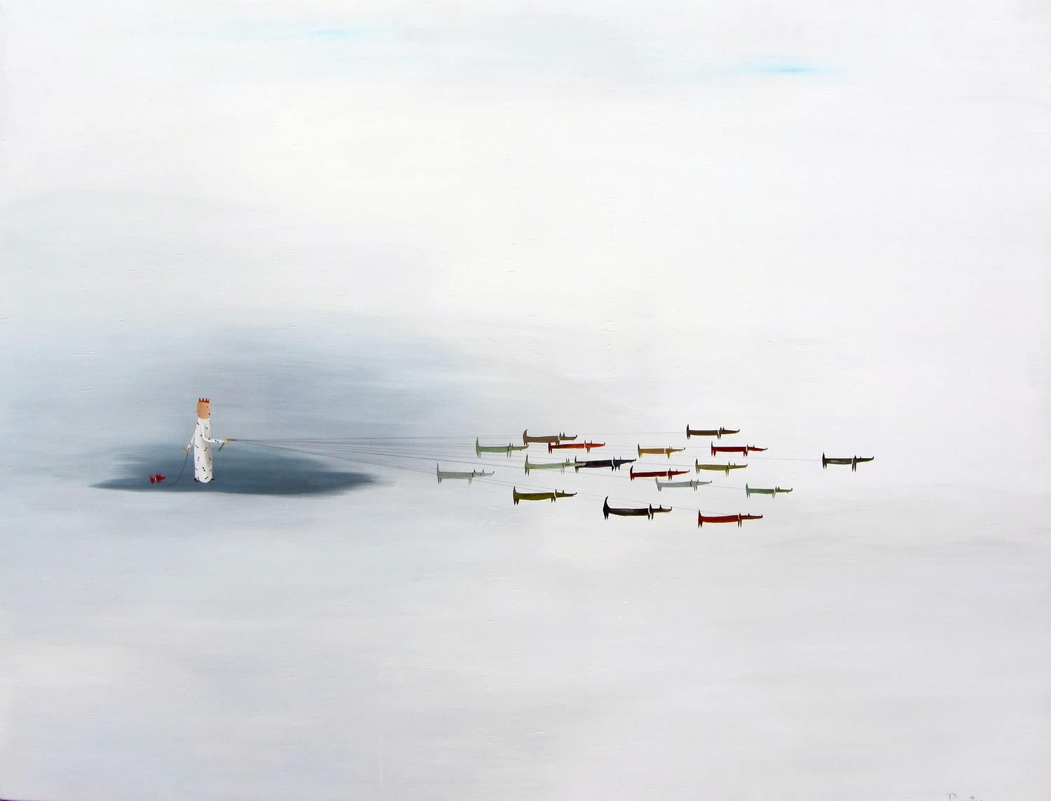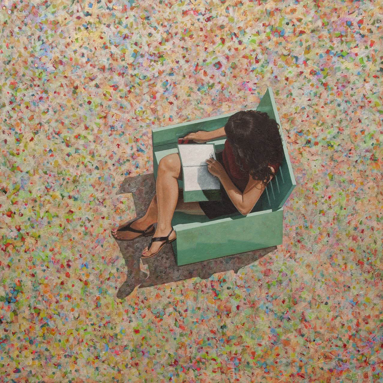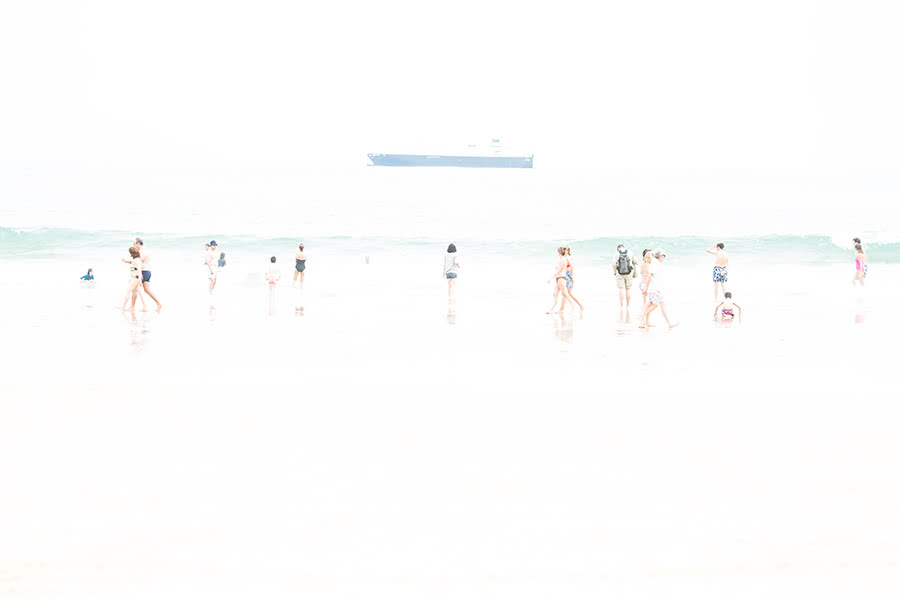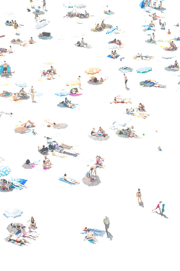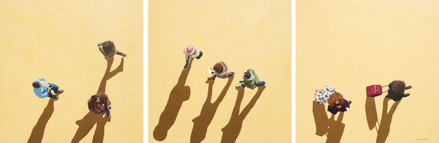 La muestra recopila un conjunto de piezas que aborda estas cuestiones desde una perspectiva múltiple, diversidad que se ve potenciada por la variedad de técnicas empleadas (escultura, pintura, grabado y fotografía). Así, Eva Navarro ofrece acrílicos de planos cenitales y entornos coloristas con gente situada siempre en espacios públicos; Jorge Flores fotografía las playas abarrotadas de bañistas convulsos en pleno verano; Marta Sánchez Luengo representa al individuo y sus nubes de pensamientos e incertidumbre; Eva Poyato recrea con vitalidad escenas y comportamientos transformados en emociones, y Xurxo Gómez-Chao construye con la mayor evanescencia escenarios imaginarios y evocadores que nos remiten al mundo interior y personal del ser.