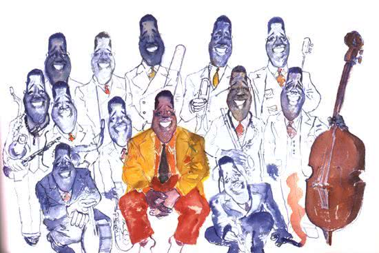 Las instantáneas se acompañan de dibujos y acuarelas del artista rioplatense Hermenegildo Sábat, autor de varios libros de jazz.