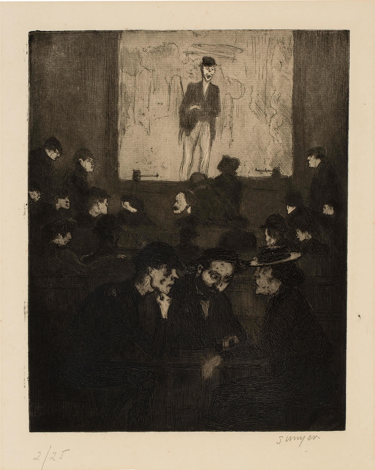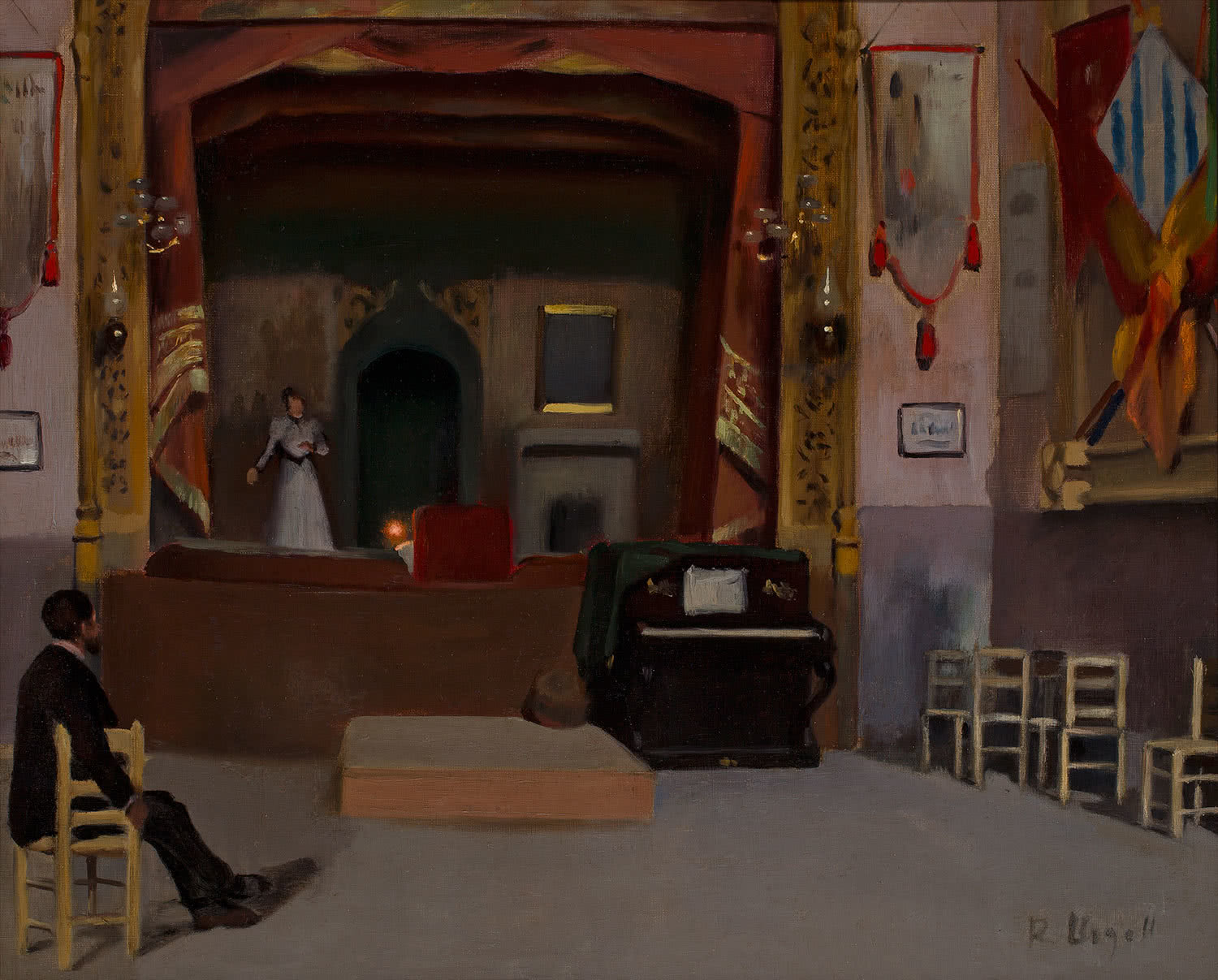Las escenografías están presentes con el romanticismo de Rovirosa y la metafísica y el detalle de Marià Andreu. De la mano de Joaquim Sunyer, la exposición revela el rarísimo grabado del interior de un concierto, mientras que se puede ver el retrato que Ramon Pichot hizo del dramaturgo Eduard Marquina, además de notas espontáneas de Josep Simont o el rostro fantasmagórico de un personaje de Brecht firmado por Modest Cuixart.