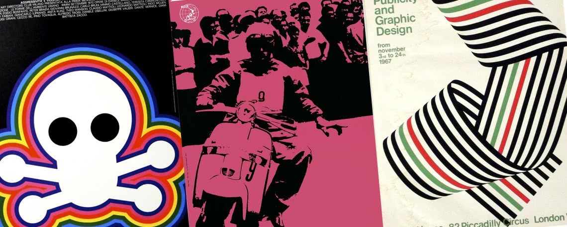 Destacan las composiciones pop diseñadas por Franco Maria Ricci por encargo de Scic, los potentes iconos multicolores de Giancarlo Iliprandi para Aflex, los bizarros anuncios de Michele Provinciali, las vibrantes composiciones de Mimmo Castellano en los aparatos de iluminación de Guzzini, los carteles de Franco Grigani para Alfieri & Lacroix o las portadas de un gran editor en búsqueda de un relanzamiento en el mercado que elaboró Mario Dagrada para Rizzoli.