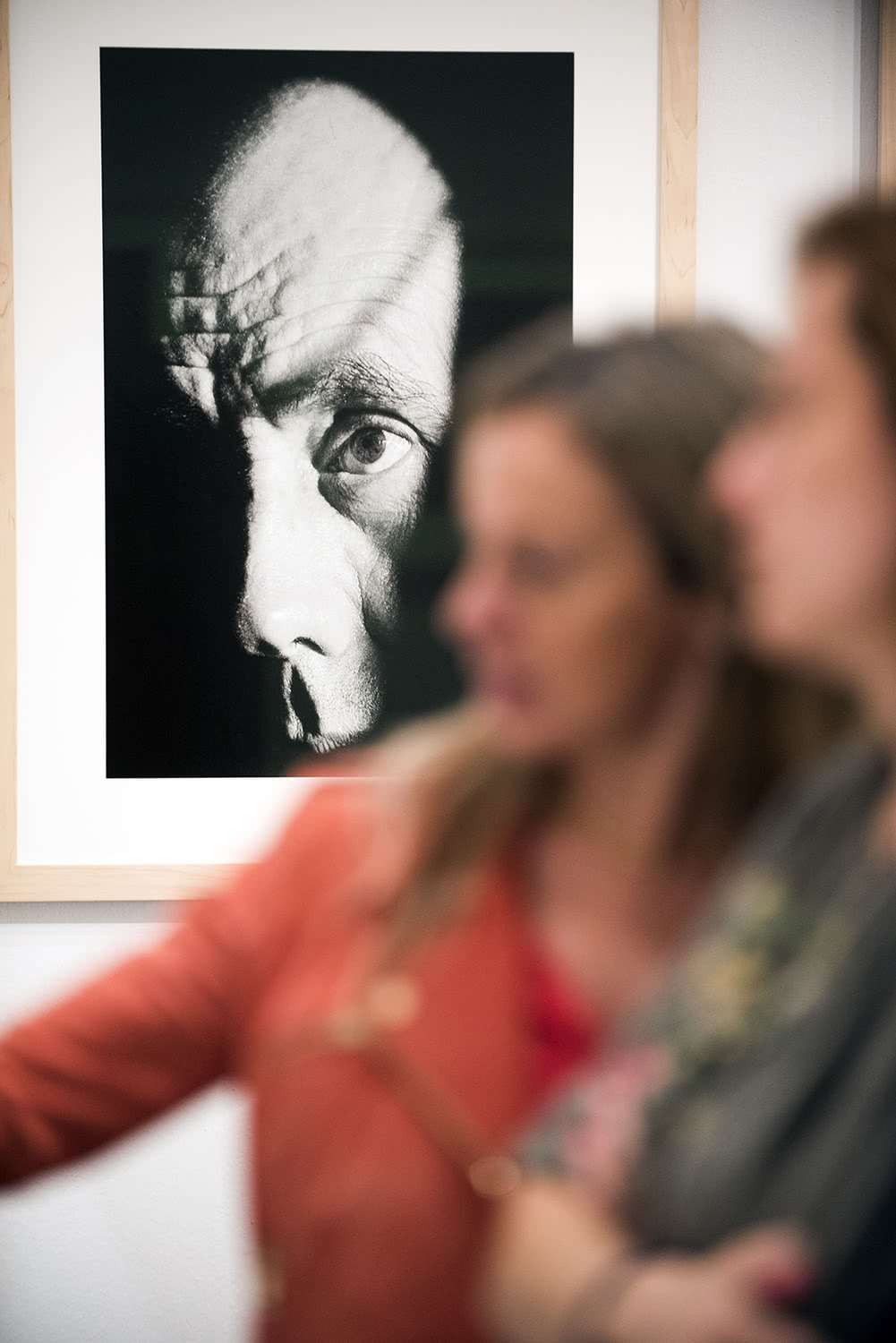 Las fotografías aparecidas en los periódicos pasan ahora a la sala de exposiciones en reproducciones de gran formato, donde adquieren una nueva dimensión. Por otra parte, la posibilidad de contemplar en conjunto el trabajo de estos años permite establecer conexiones entre las distintas piezas y valorar aún más la aportación de Madueño al retrato periodístico.