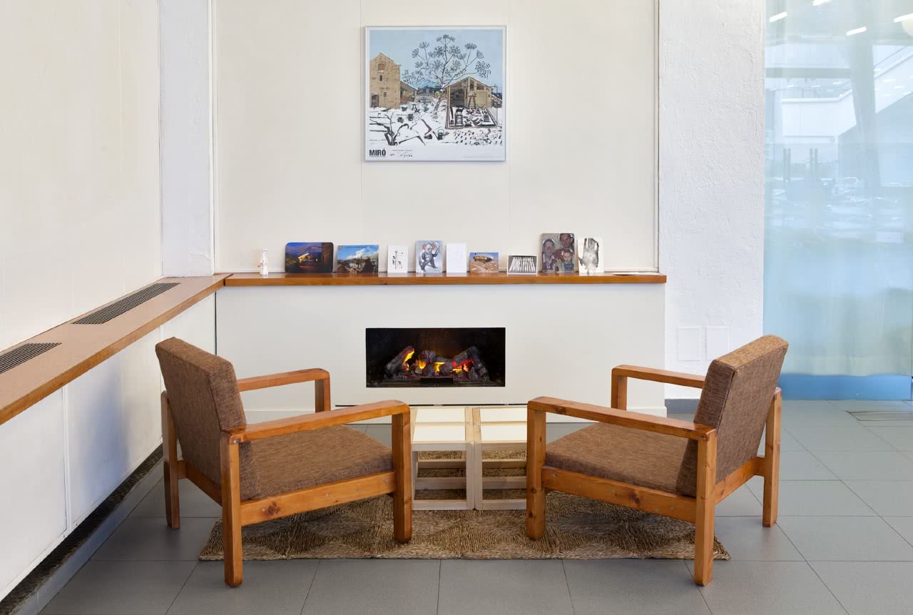 La instalación, ubicada en el restaurante de la Fundació, recrea una chimenea doméstica en el período navideño sobre la que cuelga una lámina de la obra de Joan Miró La masía (1921-1922), intervenida por los artistas y convertida en un paisaje nevado. Bianchi y Giménez subrayan así el carácter artificial e invasivo de la celebración, que ocupa todos los espacios y trastoca el paisaje cotidiano.