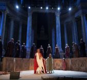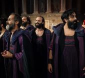 Edipo se compromete ante el pueblo a castigar al culpable. Tiresias, el ciego adivino, previene a Edipo y le ruega que mida sus palabras porque su destino está señalado por Apolo. Tras la muerte del rey de Corinto, Pólibo, al que Edipo considera su padre, una terrible verdad llegará hasta el trono de Tebas: Edipo es el causante de la muerte de Layo y Yocasta, la viuda y esposa de Edipo, es realmente su propia madre. Ante este horror, Yocasta se quita la vida y Edipo se arranca los ojos desesperado y reclama el castigo que él mismo prometió para el culpable y así salvar a Tebas.