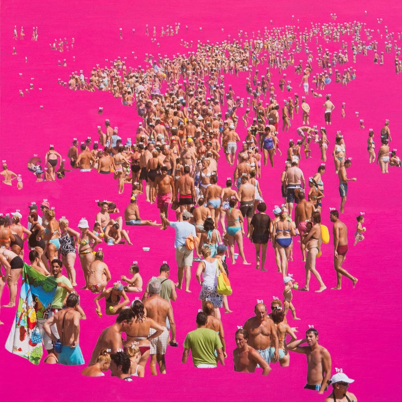 El interés por estudiar el impacto del hombre en el entorno, además del propio comportamiento del individuo, que se siente arrastrado por una corriente de costumbre social impuesta y convertida en ritual estival, da paso a una crítica indirecta sobre el por qué de este fenómeno y sus consecuencias en el paisaje y en la generación de economías estacionales. “Me interesa el fenómeno, a nivel demográfico y sociológico, que surge a raíz del boom inmobiliario en la costa Mediterránea. Me llama la atención que una gran masa poblacional que vive todo el año en la ciudad se desplace para pasar sus días de relax y descanso en otra localidad también masificada», asegura el artista.