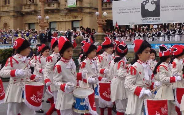A mediodía, la Tamborrada Infantil contará, por primera vez, con niñas y niños de otra ciudad, en este caso de Breslavia, que se unirán al ritmo de las composiciones de Sarriegi gracias a varias pantallas que se instalarán en los jardines de Alderdi Eder, junto al ayuntamiento.