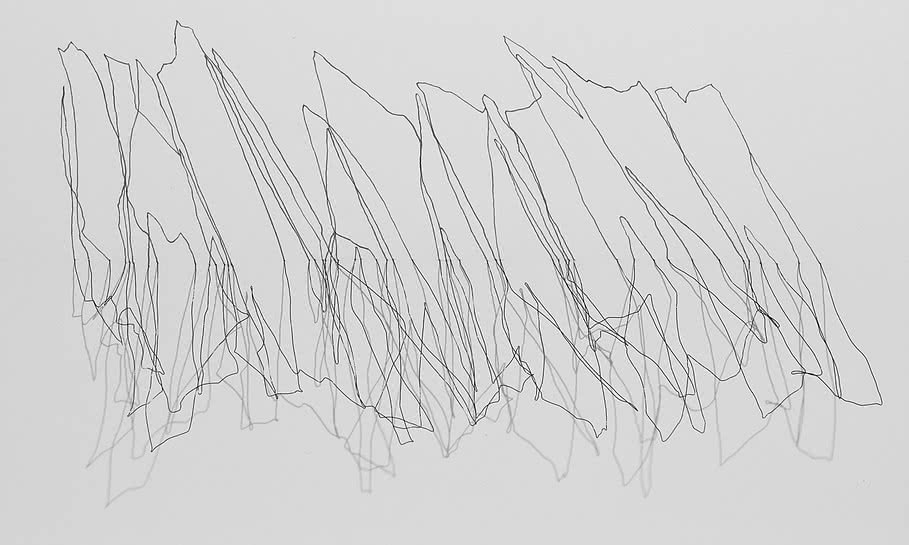 El acabado orgánico que la artista consigue con el hierro hace dudar sobre si las ramas o hierbas esculpidas son reales o no, estableciéndose un juego entre lo real y lo representado. En sus dibujos es difícil distinguir cuándo las líneas dejan de ser tinta para pasar a ser hilo de metal. Sólo la sombra que produce ese alambre nos devuelve la evidencia de ese cambio, en un discurso conceptual que traslada al espectador al mito platónico de la caverna, a la visión engañosa de los sentidos, a los distintos niveles de conocimiento que cada uno tiene de la realidad.