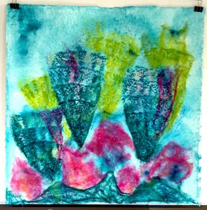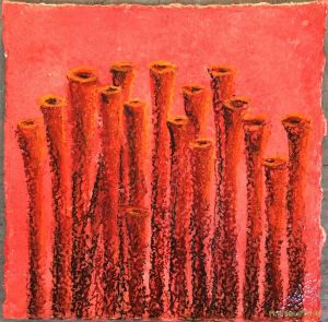 Happy Dessert! está compuesta por una serie de obras semi-abstractas de grandes dimensiones, creadas mediante tintas y acrílicos, y caracterizadas todas ellas por la singular presencia del soporte papel, que forma parte fundamental de esta nueva propuesta de Ridruejo.