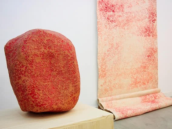 Al igual que el ser humano, estas piedras no están exentas de huellas, muy al contrario, muestran todas las marcas de su rodar por los caminos. Huellas que se han quedado grabadas y huellas que impregnan e imprimen su recuerdo en otros, en un continuo e infinito desarrollo, que es el que ha impregnado de huellas el estudio, papeles, telas, el barro y la vida de Concha García durante estos cuatro años.
