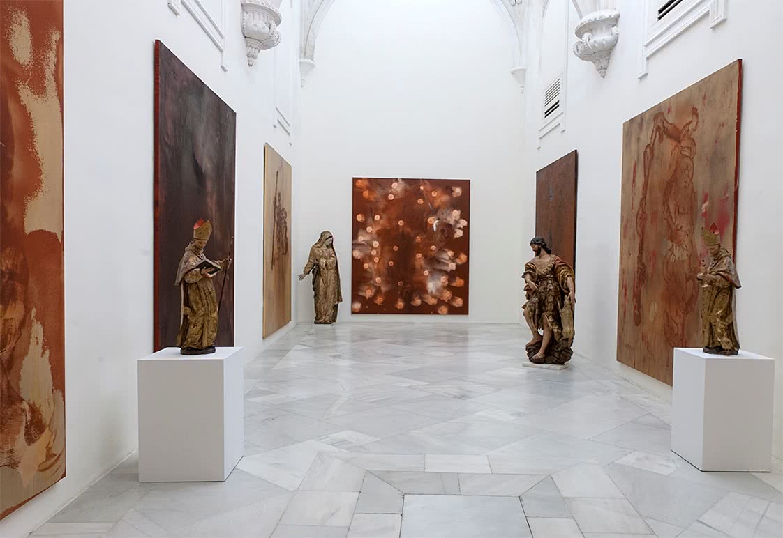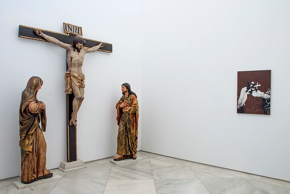 En otras estancias, como la Capilla de Colón, los cuadros del José Manuel Broto rodean las piezas de imaginería policromada del escultor Pedro Duque Cornejo del siglo XVIII, mientras en la Capilla De profundis, el Calvario de Villoldo del siglo XVI dialoga con una obra de Tàpies, pieza que, primera obra que formó parte de la colección del Centro Andaluz de Arte Contemporáneo.