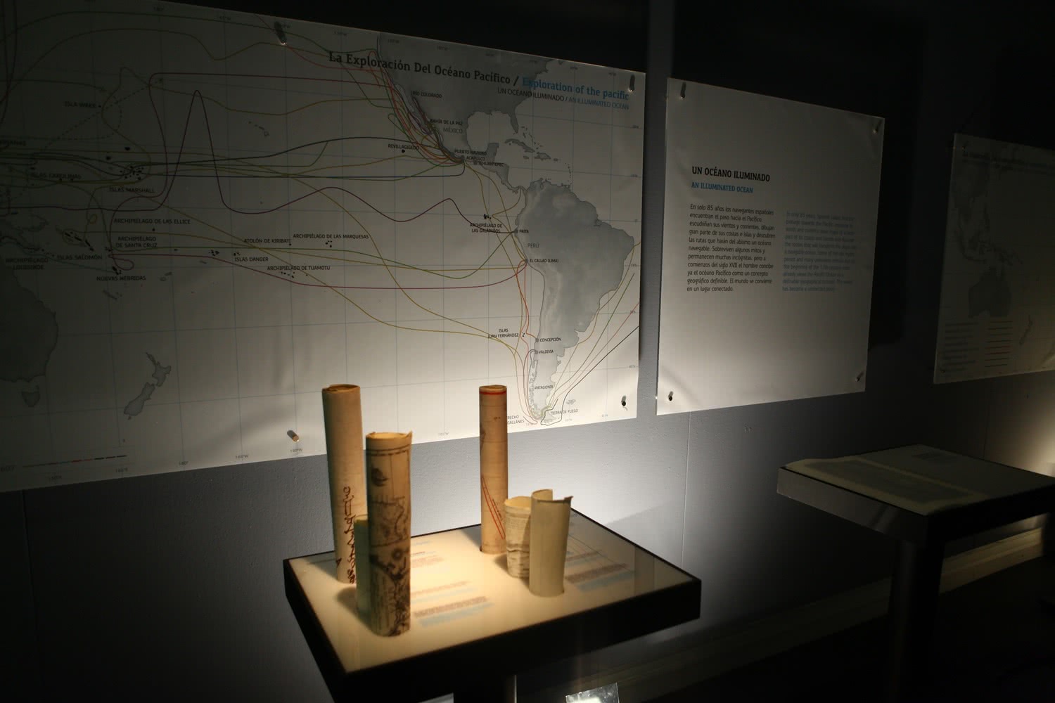 En unas pequeñas fichas que acompañan a los documentos, el visitante puede conocer los principales hitos de cada expedición, descubriendo como los temporales, el escorbuto, los motines y la inmensidad, convirtieron la exploración del Pacífico en una empresa humana de extrema dureza por su altísimo coste en vidas. Como piezas destacables en este ámbito se muestra diversa documentación relacionada con Magallanes y Elcano, cartas entre Urdaneta y Felipe II, el derrotero de Legazpi y los primeros mapas de Filipinas, California, Islas Marianas y Palaos, así como reproducciones de modelos navales e instrumentos de navegación de la época.