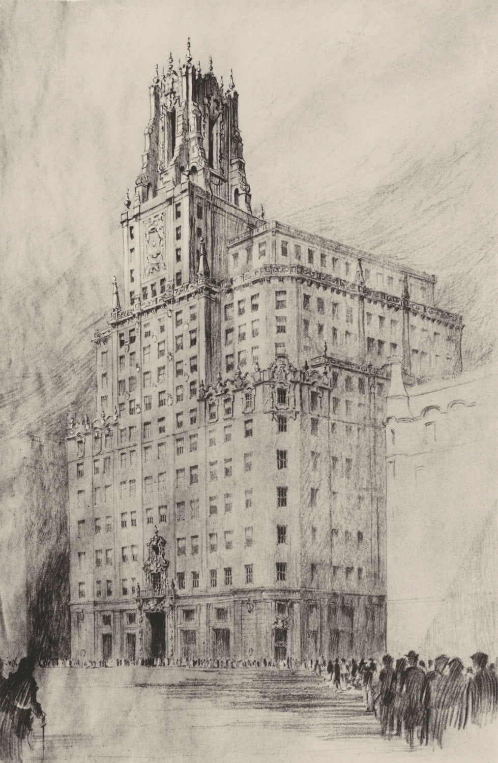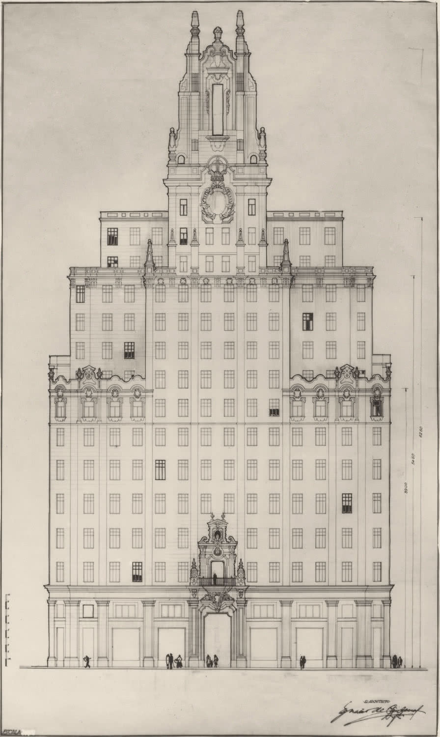 La relación de Cárdenas y el edificio no acaba con la Guerra Civil. La ampliación llevada a cabo en los años 50 se hace siguiendo su proyecto original y en 1955 se levanta, por fin, en Gran Vía el edificio tal y como lo había diseñado. Un rascacielos, de factura ‘a la americana’, “imponente, fuerte y majestuoso”. Y que con sus 89,30 metros domina la ciudad de Madrid desde entonces.
