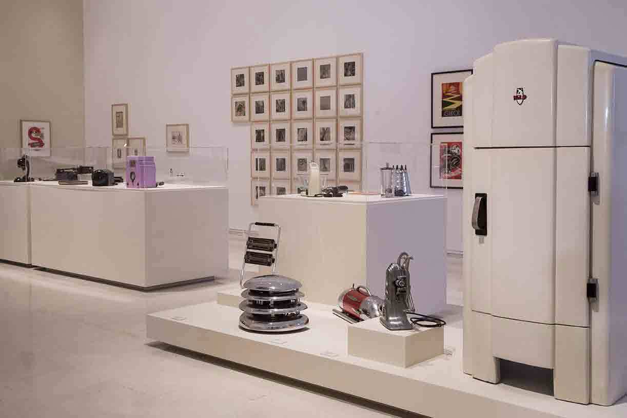 5. La transformación de la vida cotidiana. La búsqueda de lenguajes universales en las artes visuales vivió uno de sus momentos estelares con el desarrollo del Estilo Internacional, movimiento en el campo de la arquitectura y el diseño que tuvo un amplio seguimiento en los años 20 y 30. Se exhiben más de 40 piezas de la colección Alfaro Hofmann, en su mayoría electrodomésticos, junto con los carteles de la revista De Stijl y obras representativas de la labor modernizadora de la Bauhaus alemana que impulsó nuevas técnicas constructivas por todo el mundo desde su laboratorio de investigación, dirigido por artistas como Moholy-Nagy. Del artista húngaro es el filme de 1930 Obra ligera: Negro, Blanco, Gris, que se proyecta en esta sala.